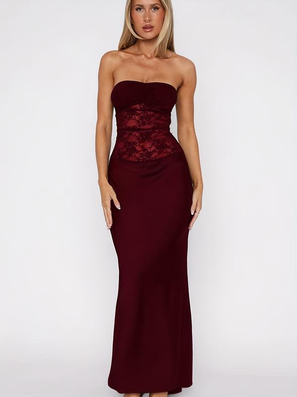Women's Plain Contrast Lace  Tube Dress, Elegant Strapless Evening Party Gown, Ladies Summer Clothes