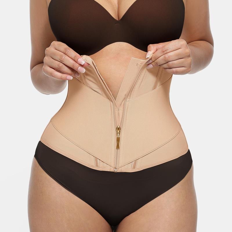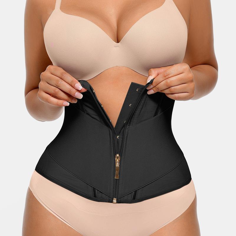 Feelingirl FeelVibe Waist Cincher offers tummy control with comfortable fabrics. It features a zipper waist trainer for added control. The U-shaped front design enhances visual contrast and highlights curves. Internal single-breasted buttons make it easy to wear. An external gold zipper and 360° wide elastic band ensure a secure fit.