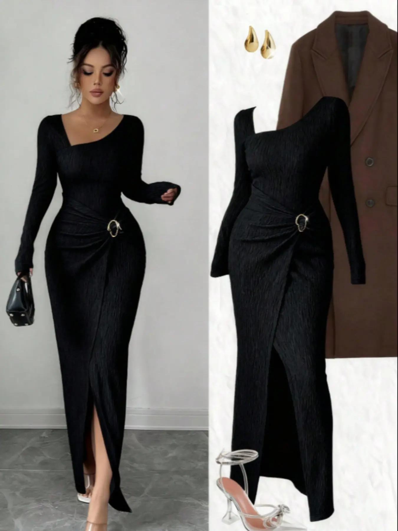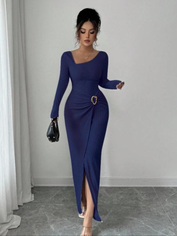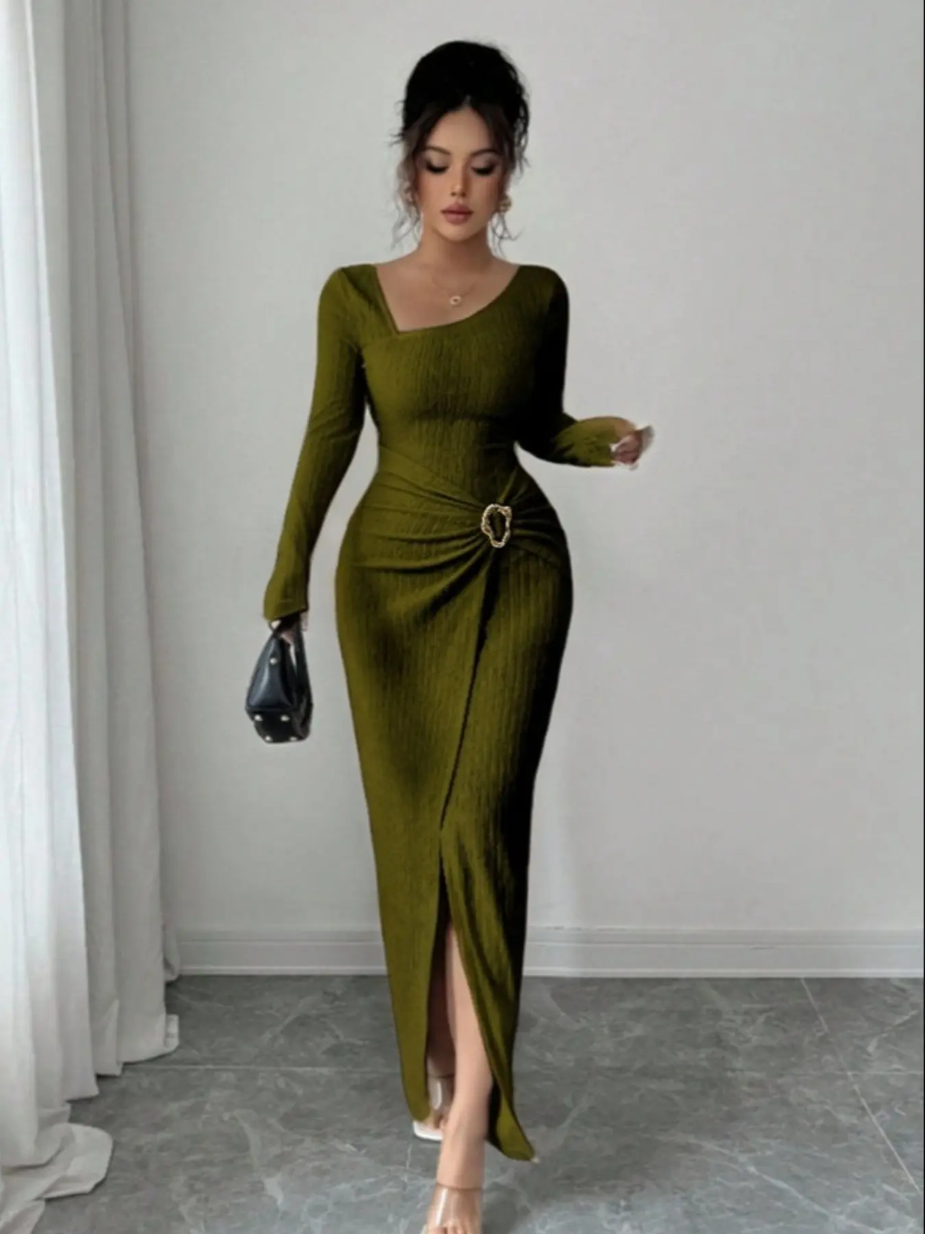 I purchased for a Christmas party. The dress fits perfectly for my size. I ordered a large, I’m 5-4” and 180 lbs. The split is a little too high for me.