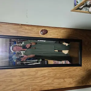 Lovely outfit. Nice material. Flowy..unique. True to size. Great color. Holds up well to washing. Nice piece to have when you want a unique look🙌