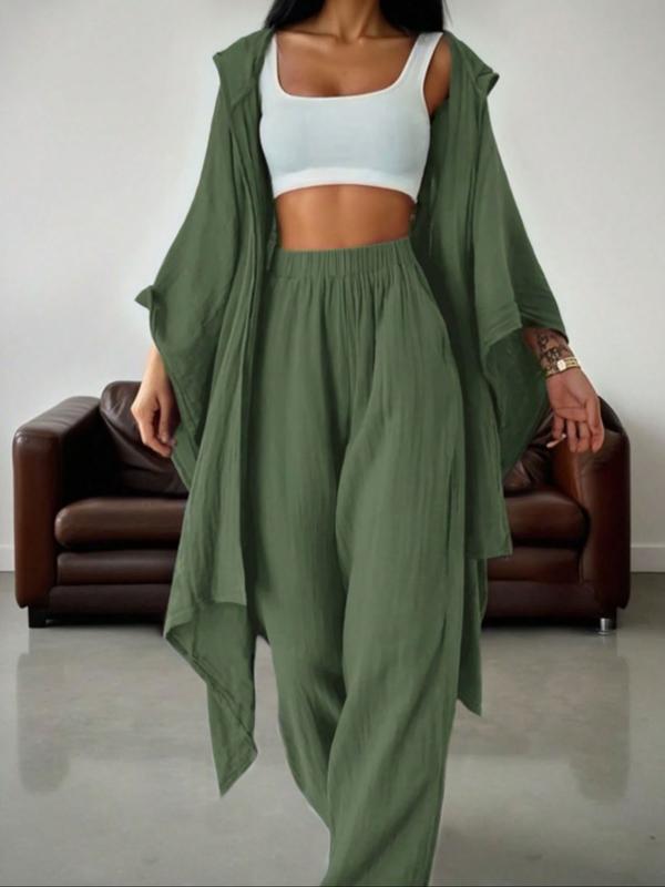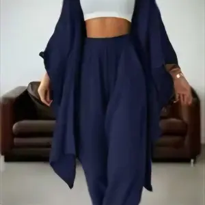 Loose fitting cardigan perfect for indoor wear during these colder days and the pants are comfy and stretchy enough for everyday wear