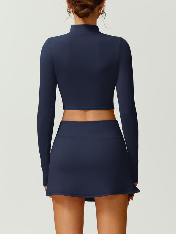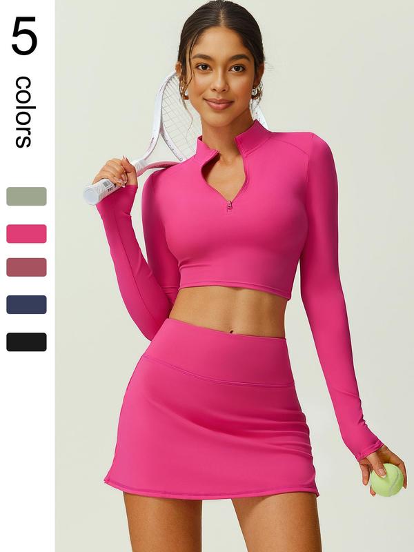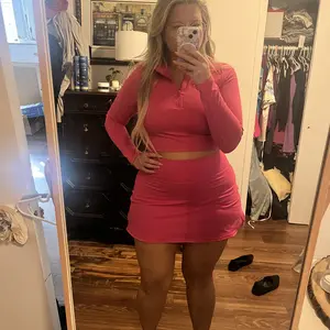 I love this outfit!!! I weigh 155 lbs 5’6ft and I got a size Medium. The outfit is soooo cute! and it does not ride up ! It has little shorts under the skirt as well. The top is pretty cropped, I have a short torso so it wasn’t super cropped but it is short.