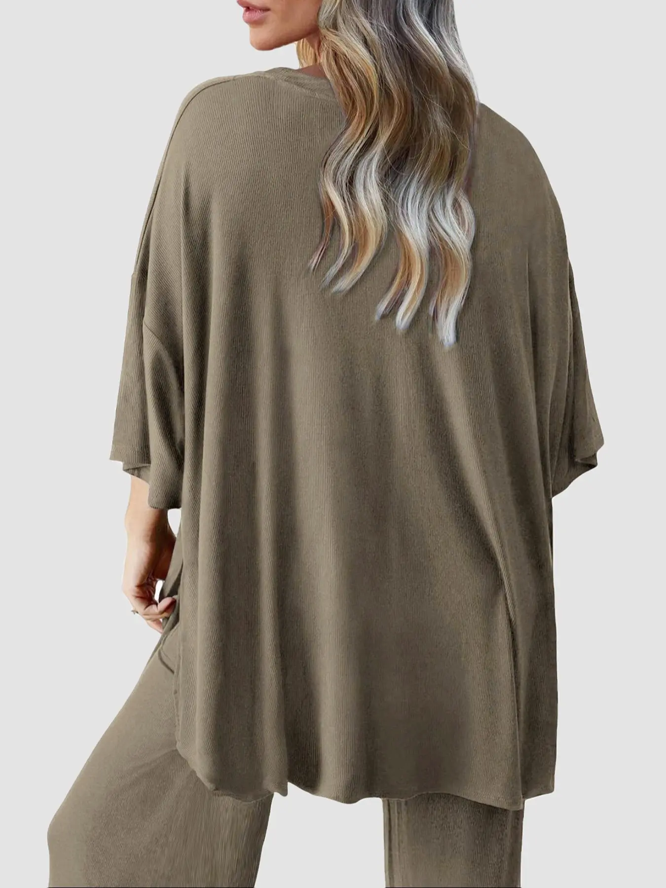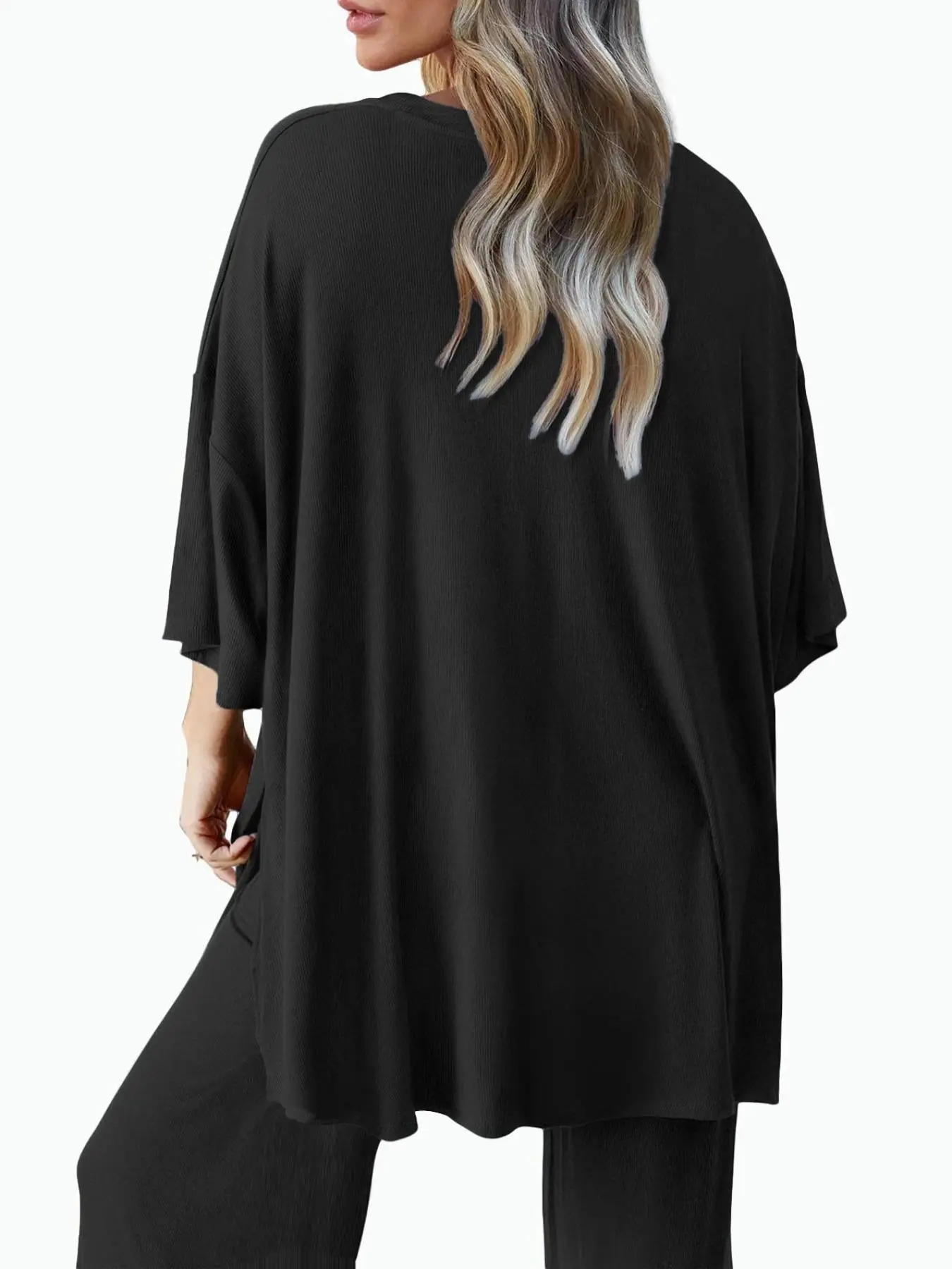 I LOVE this set!! Washes and dries great. Only downside side is it holds stains so treat immediately if you can. But it’s oversized and so stretchy.