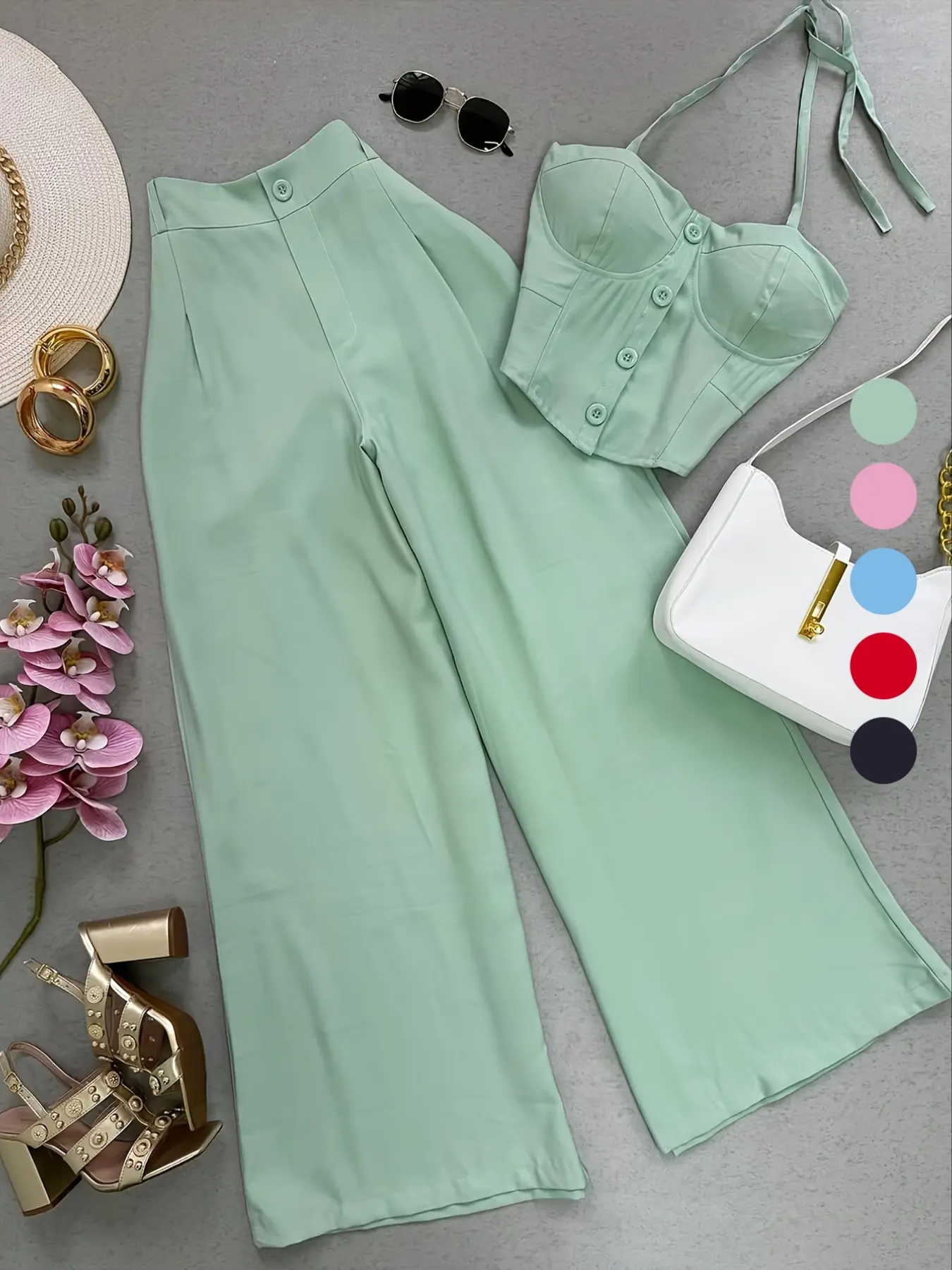 Hide the food baby but still look snatched. The high waist is everything. 🍝 #highwaistedpants #haltertop #chicstyle #elegantoutfit #dateoutfit