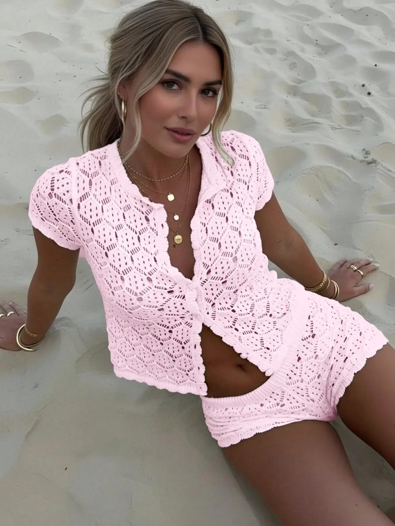 Women's Two-Piece Set, Matching, Casual Summer, Knitted Sweater & Top, Beachwear, Holiday Clothing, Ladies' Fashion Ensemble