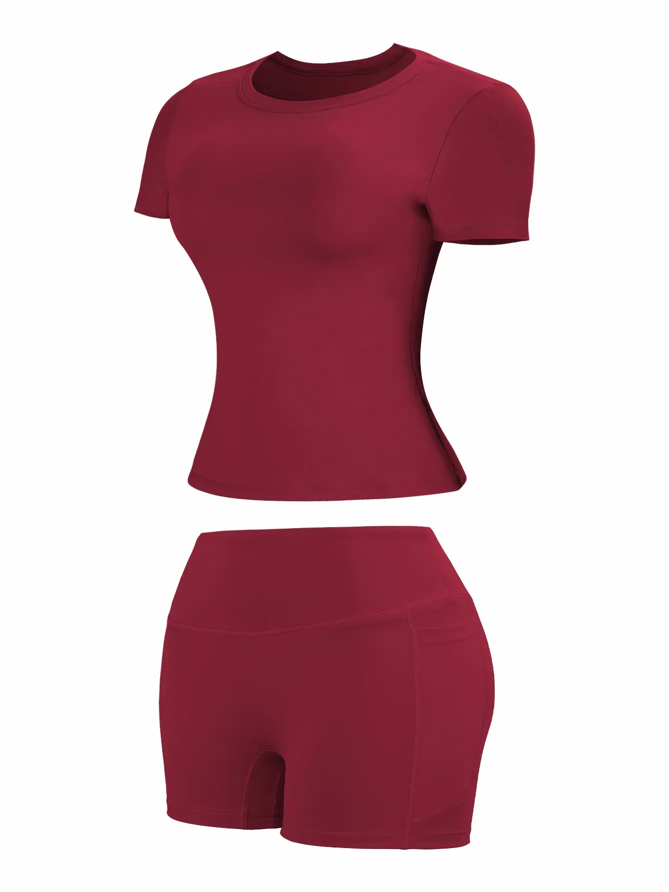 5. New Women's Two-Piece Set, High-End Solid Color T-Shirt and High-Waist Fitted Shorts Activewear Set, Leisure Breathable Quick-Drying Set, Suitable for Yoga and Gym Wear, Women's Summer Sports Outfit, Athletic Wear, Fitness and Running Clothing