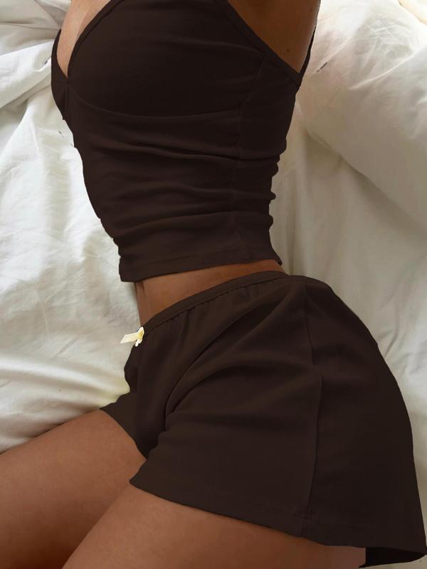 5. Two-piece Set Women's Solid Crop Cami Top & Shorts, Casual Comfy Camisole & Shorts for Daily Wear, Ladies Two-piece Outfits for Summer, Camisole Sets