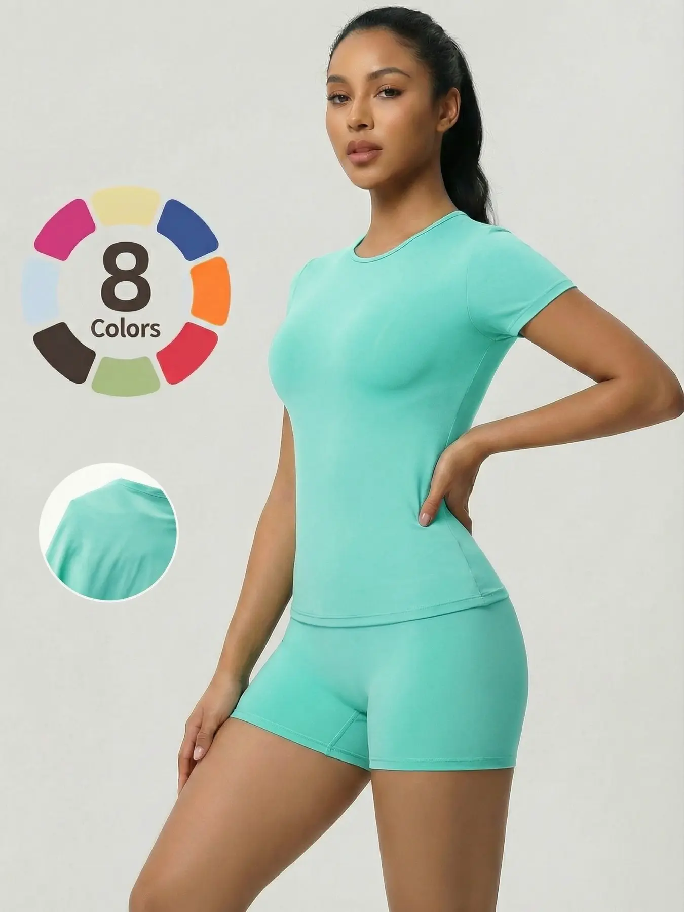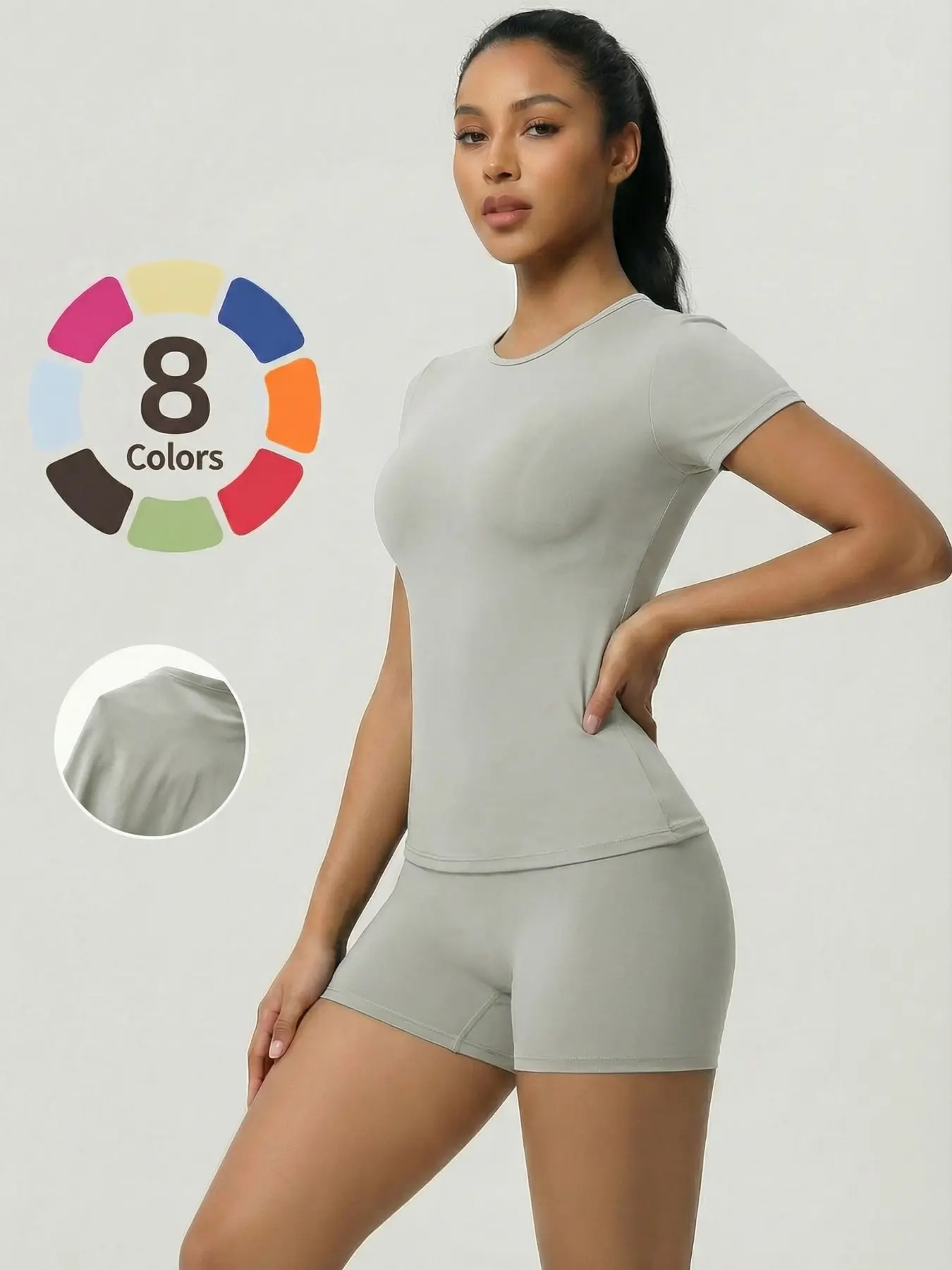 5. Women's Two-Piece Short Sleeve Top and Shorts Set, Sexy Casual Design, Comfortable Fit, Perfect for Daily Wear, All Seasons, Plain Style