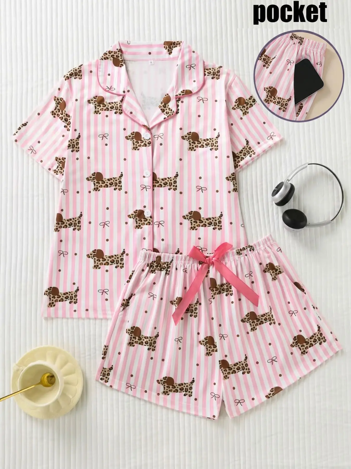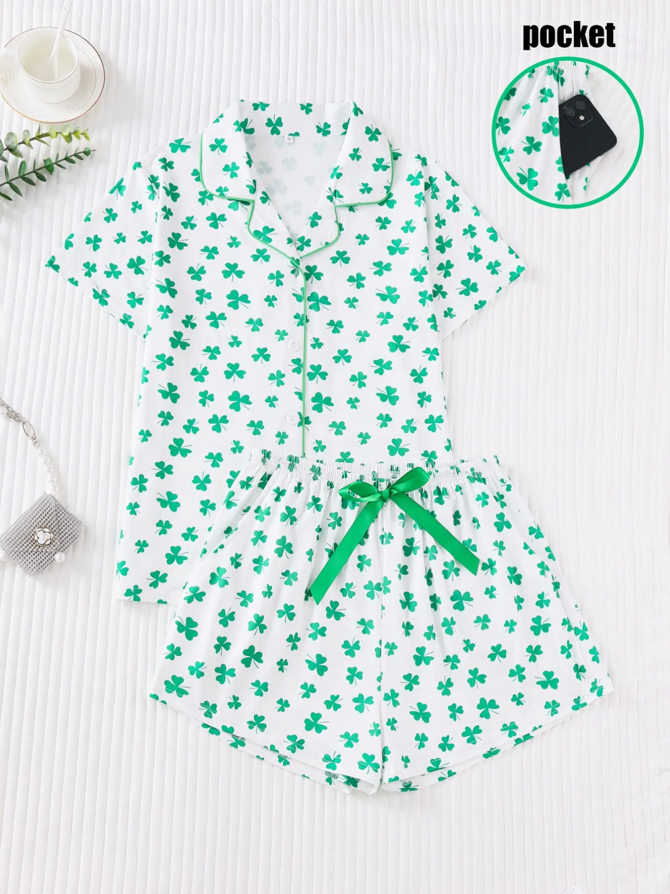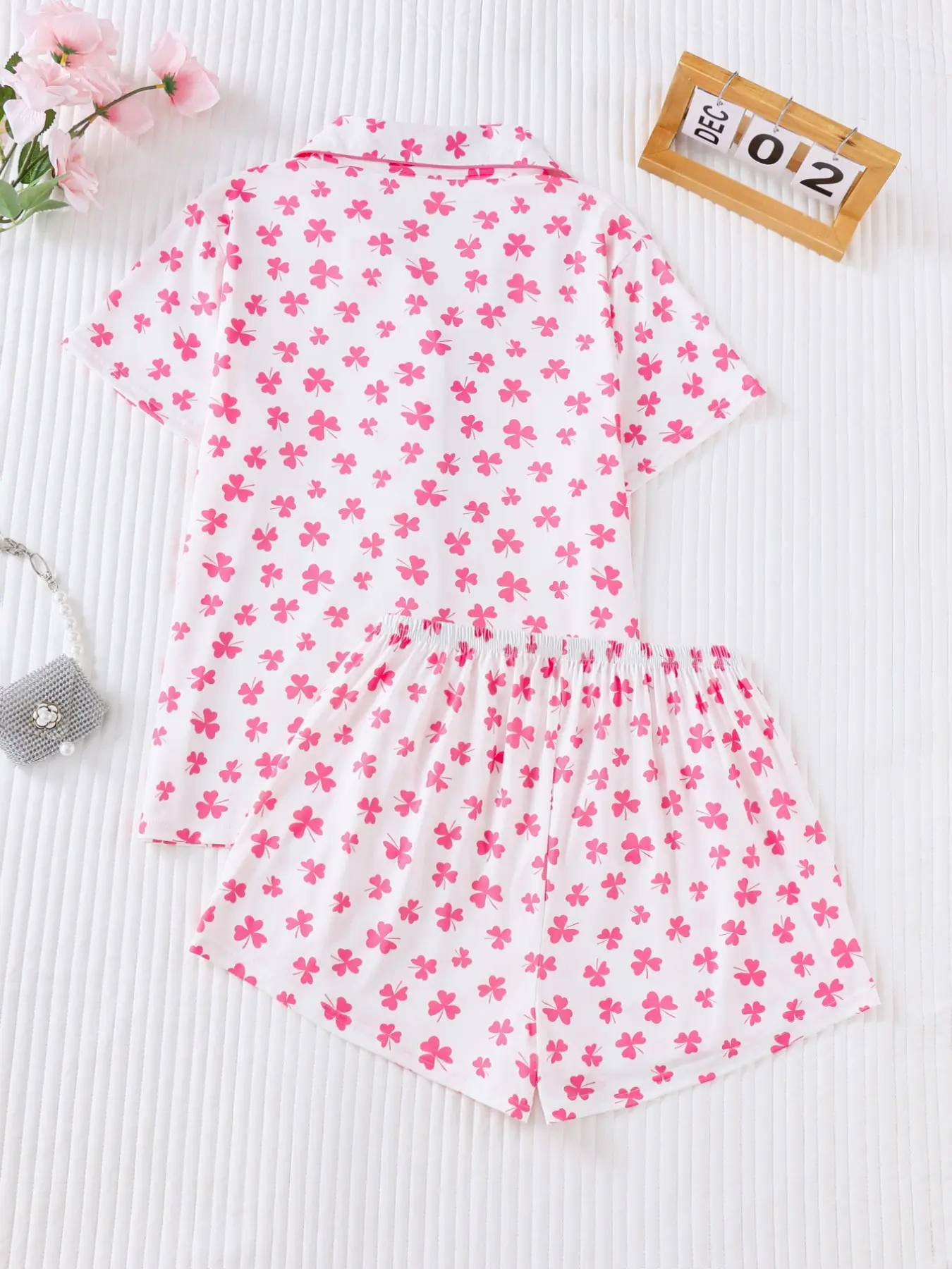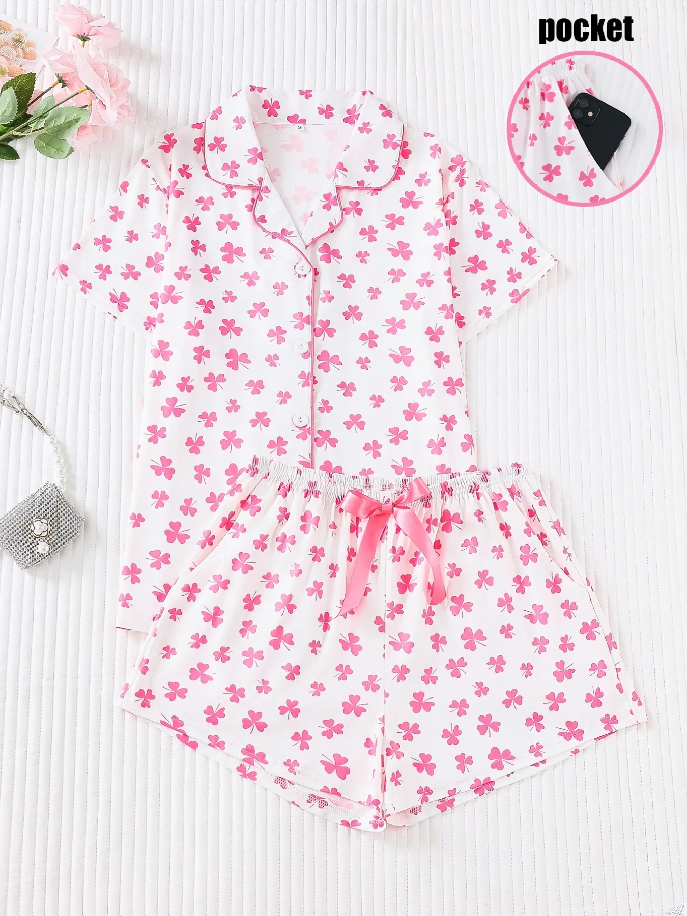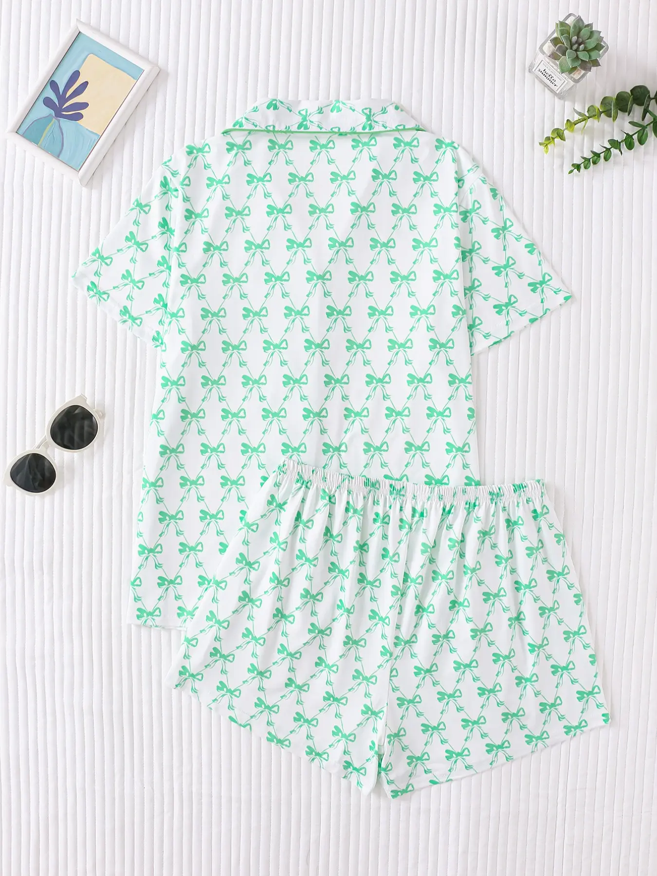 Women's Two-Piece Sleepwear Set๏ผŒ Bow Full-Print Design #bow #twopieceset #tiktokshopspringglowup #sleepwear#pajamas
