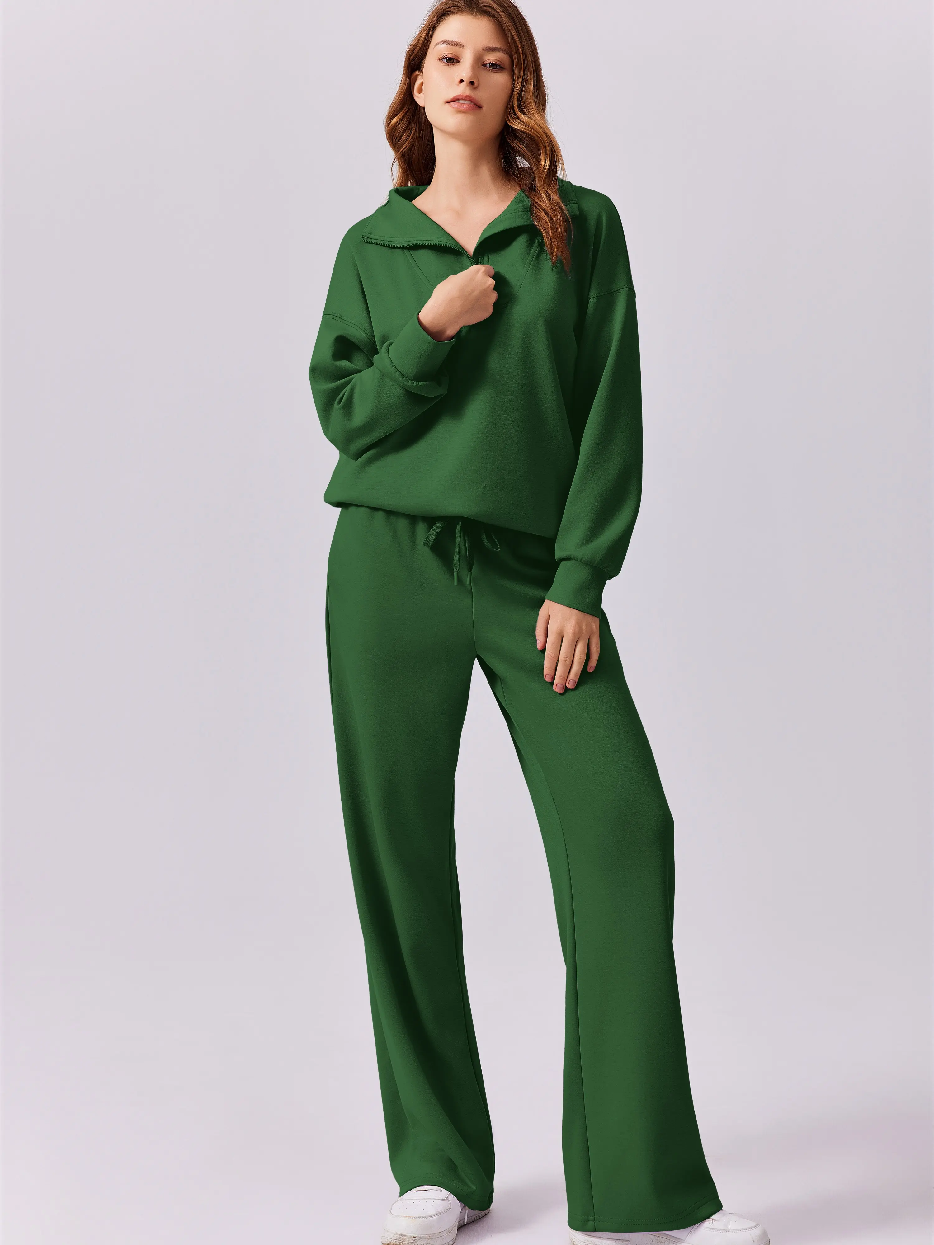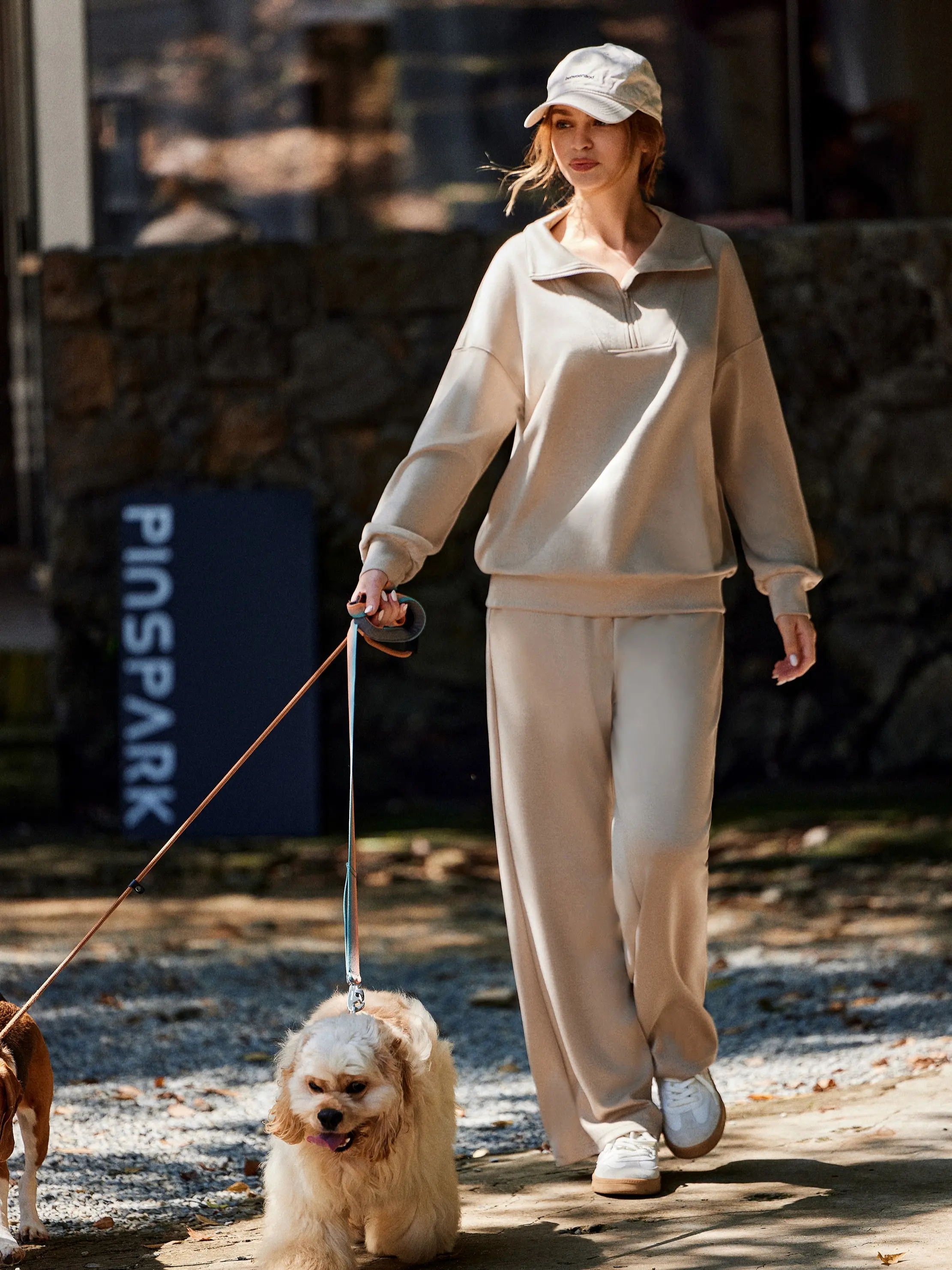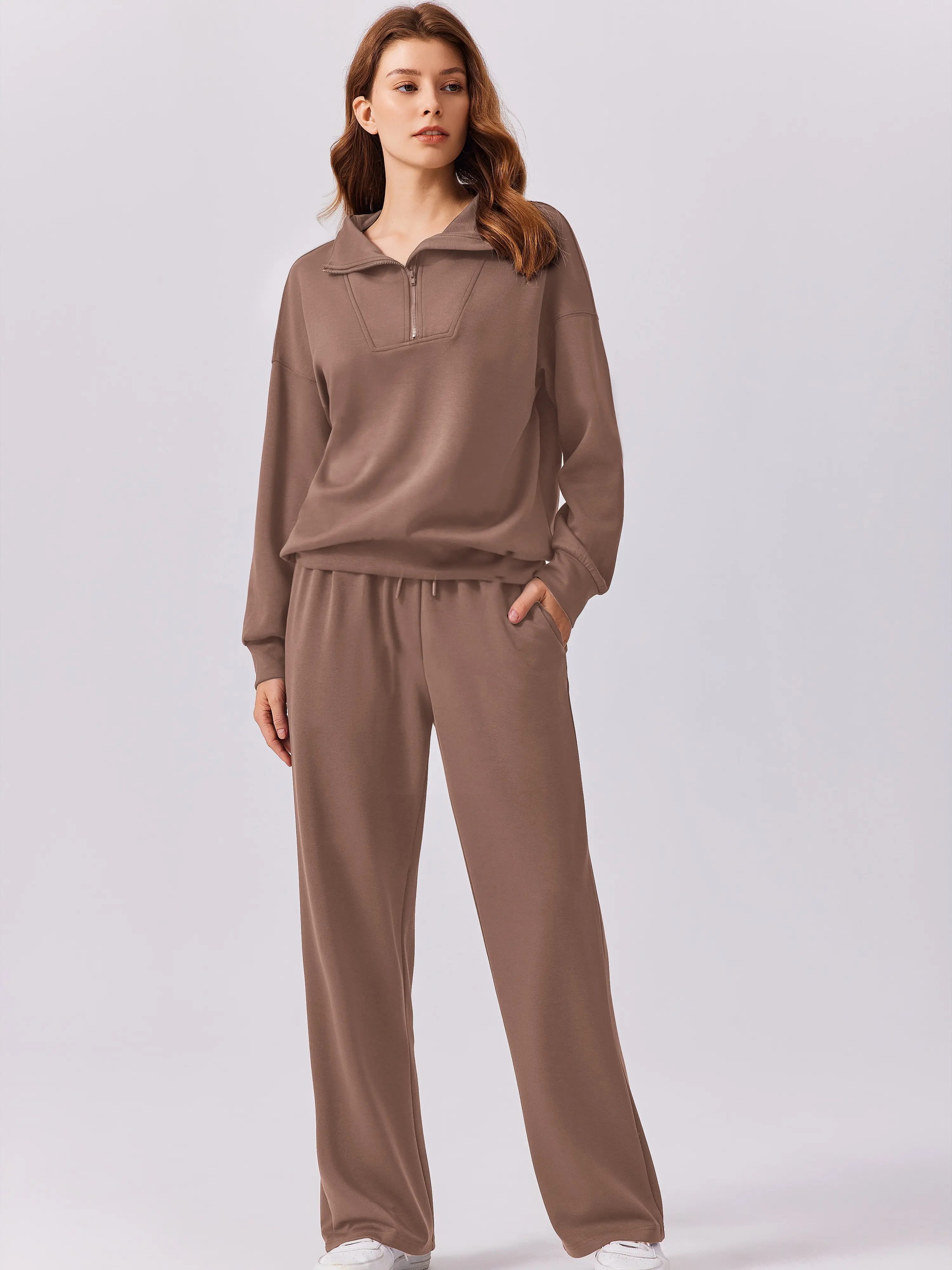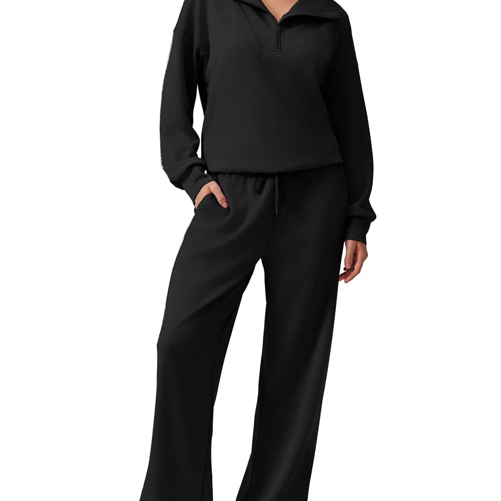 ·Features: This activewear set includes a half-zip long-sleeved oversized sweatshirt and high-waisted drawstring wide-leg sweatpants with pockets, making it a stylish 2-piece activewear set
