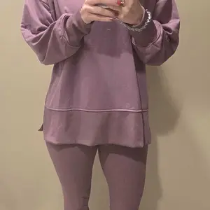 Cute and mostly comfy set. I am 5'3, 128lbs and ordered a small. The top is definitely oversized. The leggings are the issue here, they are more like long underwear material than actual legging , so they lack the comfy stretch and flat waist band of regular leggings.
