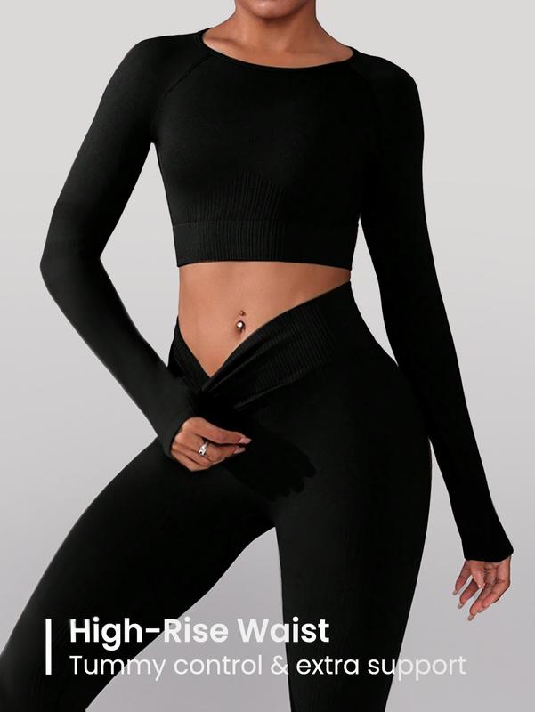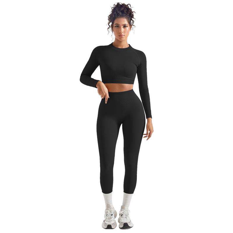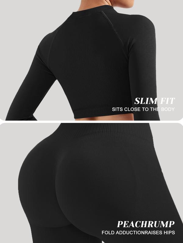 ·【Effortless Style & Versatility】: This sleek two-piece workout set includes a long-sleeve top and leggings, combining fashion with function. Its minimalist design gives a polished, athletic look, making it perfect for both intense workouts and casual outings, offering you versatility for any occasion.