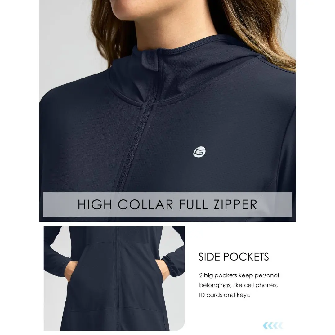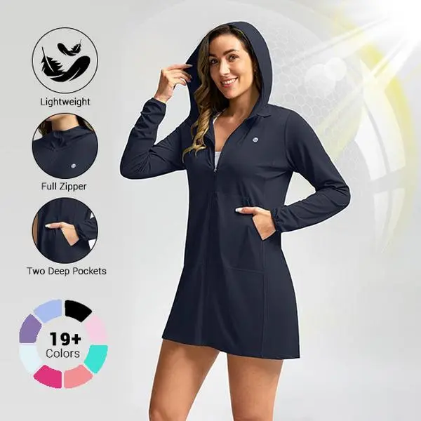 ·Hoodie & Length Desgin: Women's swim cover up with hood give you more neck protection. Long sun protective jacket provides ample coverage, to protect your hips and crotch from sunburn.