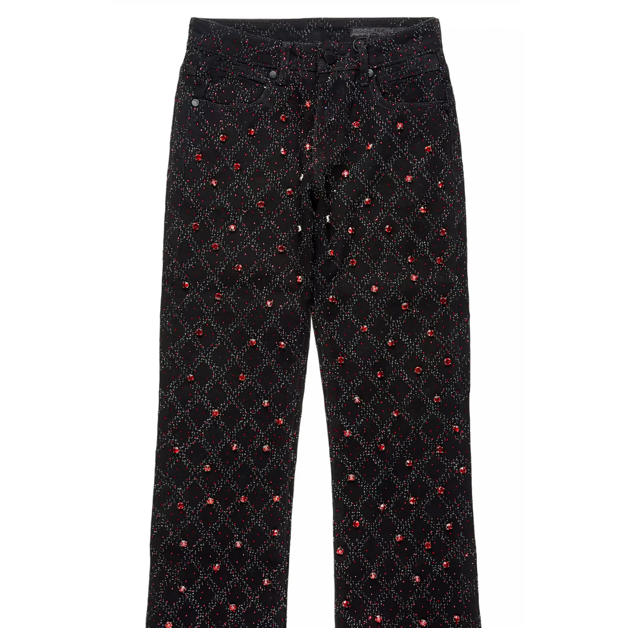Sareka Black/Red Rhinestone Stacked Flare Jean