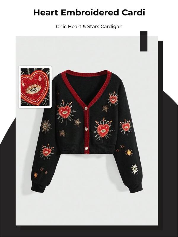 【Unique Embroidery】: Featuring intricate embroidery of hearts and stars, this cardigan stands out with its playful and appealing aesthetic.