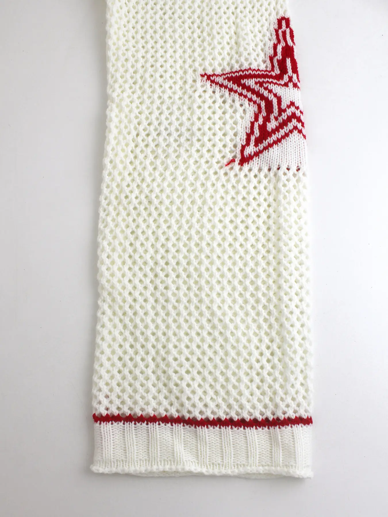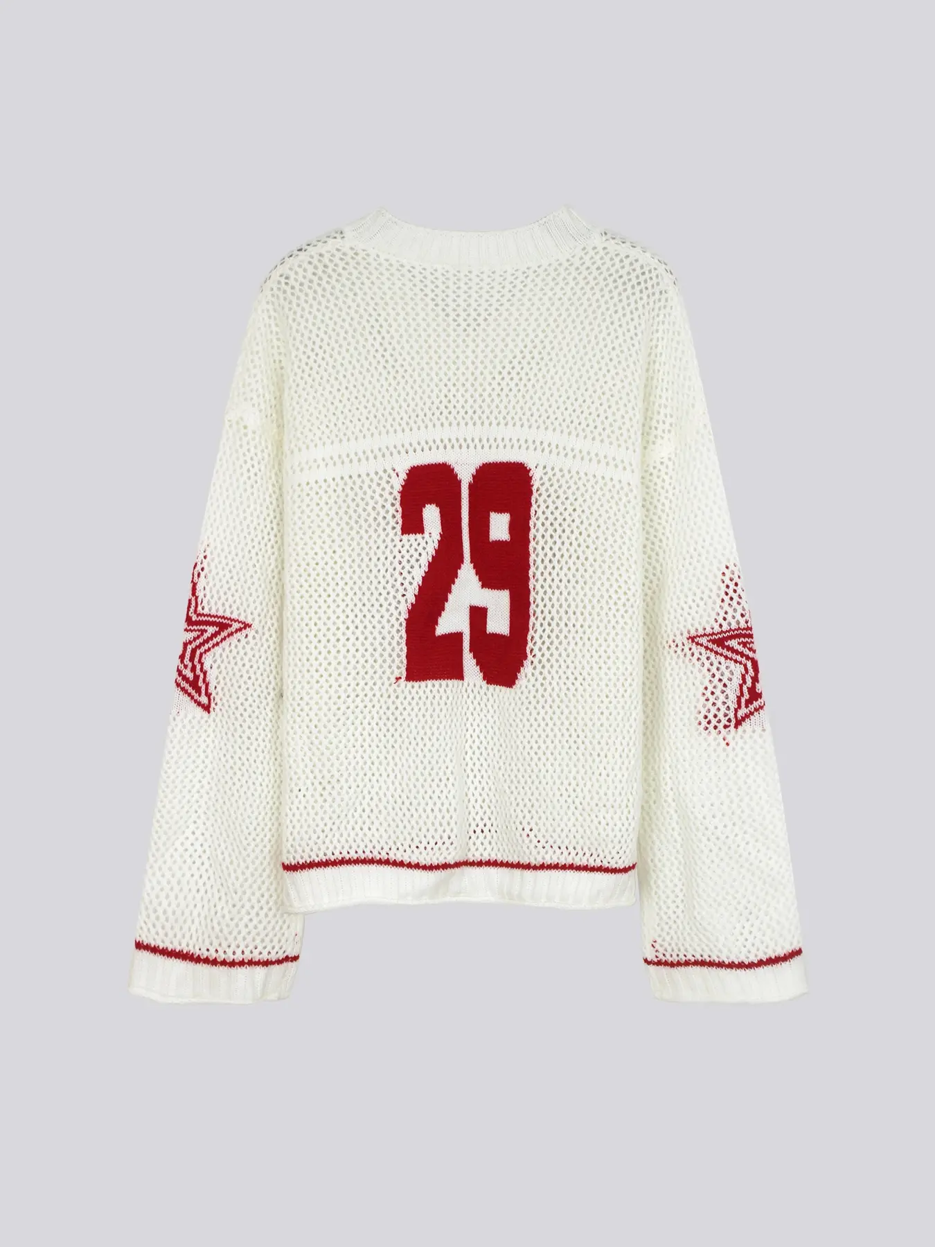 5. Women's V Neck Knit Pullover Sweater Long Sleeve Colorblock Hollow Out Star Number Design Fashion Casual Elegant Spring Summer Fall Wear
