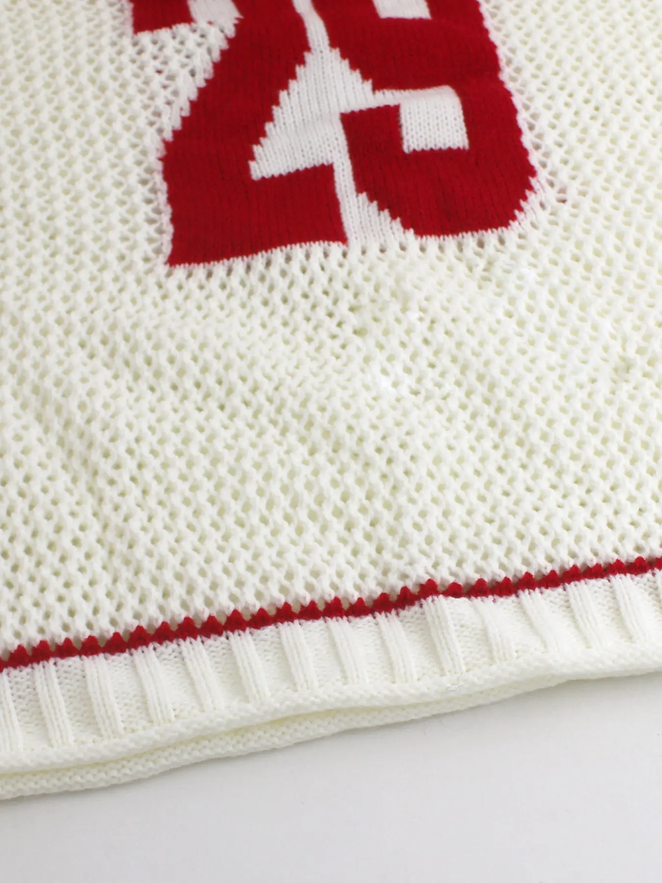 Women's V Neck Knit Pullover Sweater Long Sleeve Colorblock Hollow Out Star Number Design Fashion Casual Elegant Spring Summer Fall Wear
