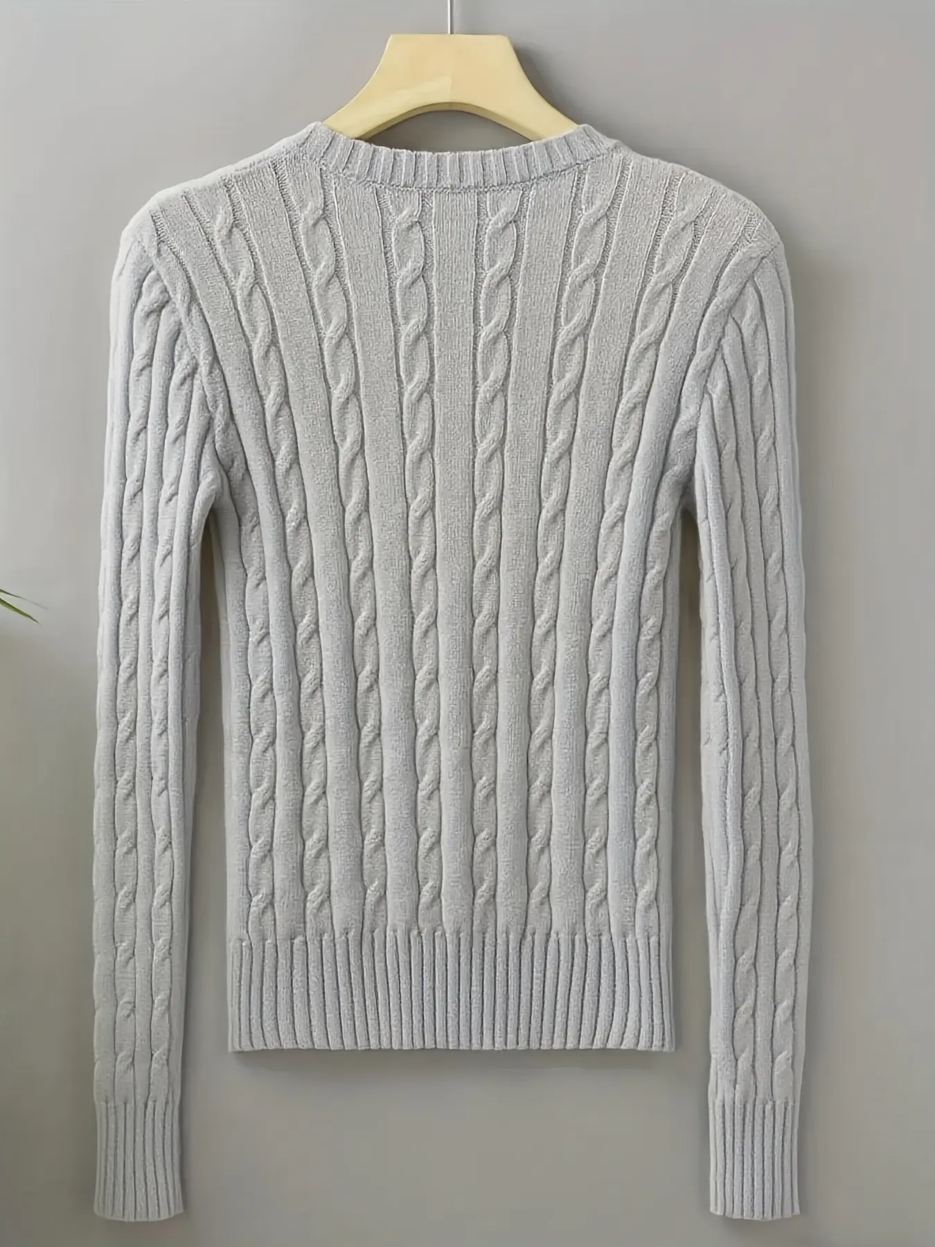This V-neck cable knit sweater is so soft & flattering—perfect for cozy days or cute layered looks 🧶✨ This video is AI-generated #sweater #jumper #womensclothing #womenswear