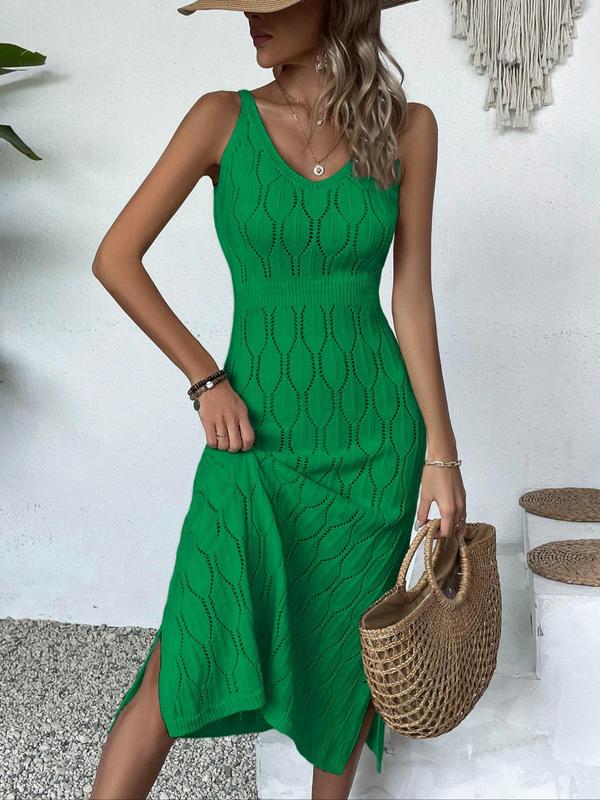 5. Women's V Neck Long Sleeveless Dress, Elegant Fitted Split Thigh Design, Casual Holiday Beachwear, Fall & Winter Fashion