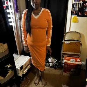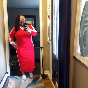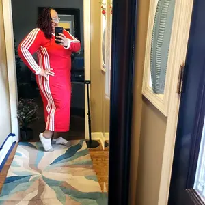 Cute dress can be worn with sneakers boots or heels nice stretch material I brought a size extra large I’m 5”10 206 lbs tall girl friendly nice buy!