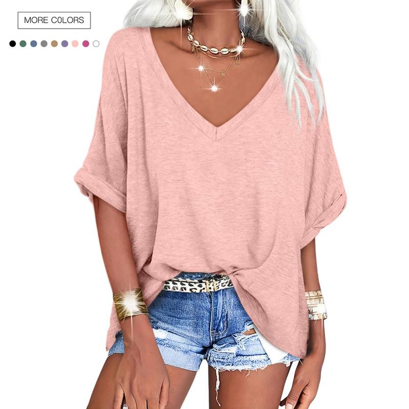 Womens Oversized Tops V Neck Summer Short Sleeve Casual Tshirts