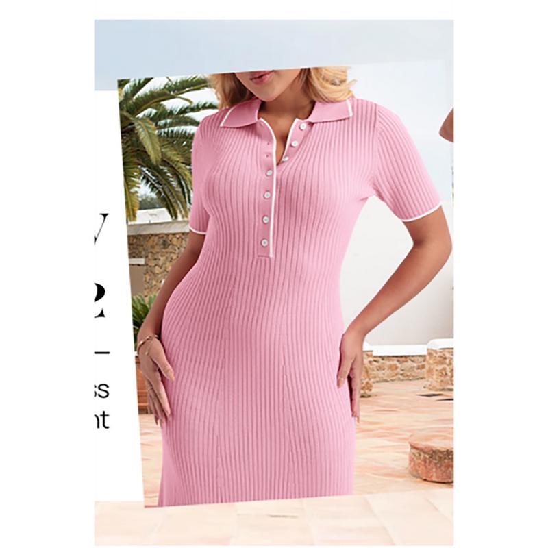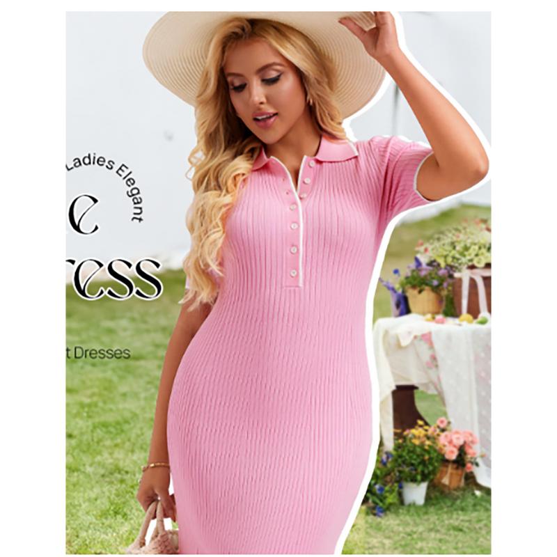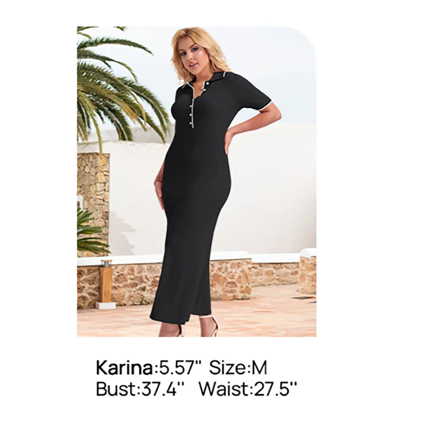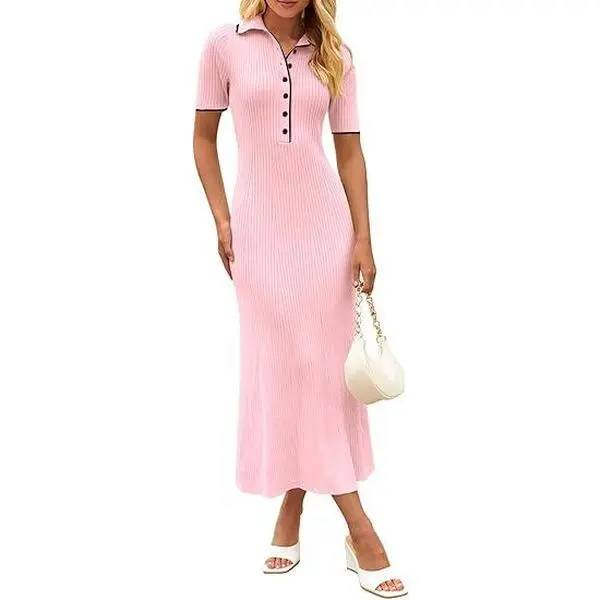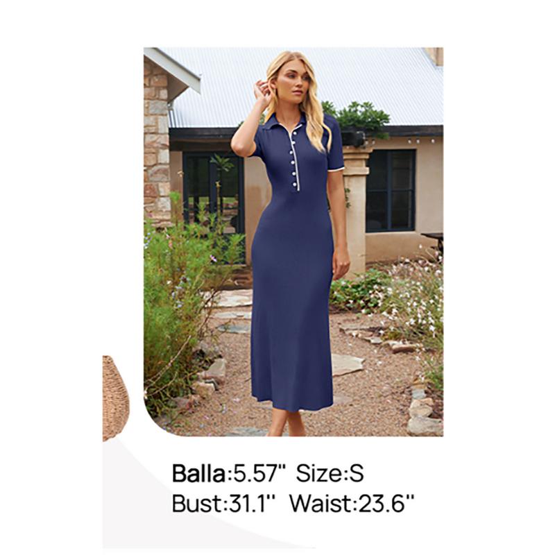 ·Feature: V neck, lapel neck, short sleeve, button-front, contrasting color details on the neckline and cuffs for a romantic style, fitted bodice and pleated fishtail skirt for a custom fit, ankle length, womens summer sweater dress, dresses for women 2025 casual
