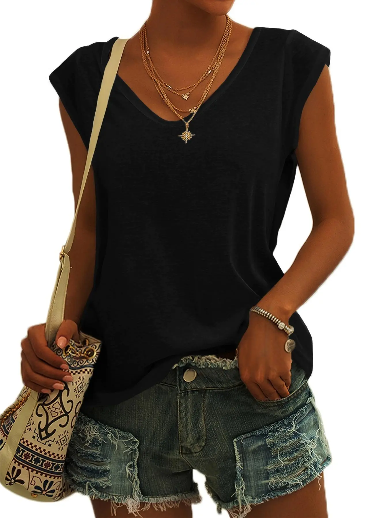 The shirt is so pretty, the color and the material is super soft and love the cap sleeves so feminine