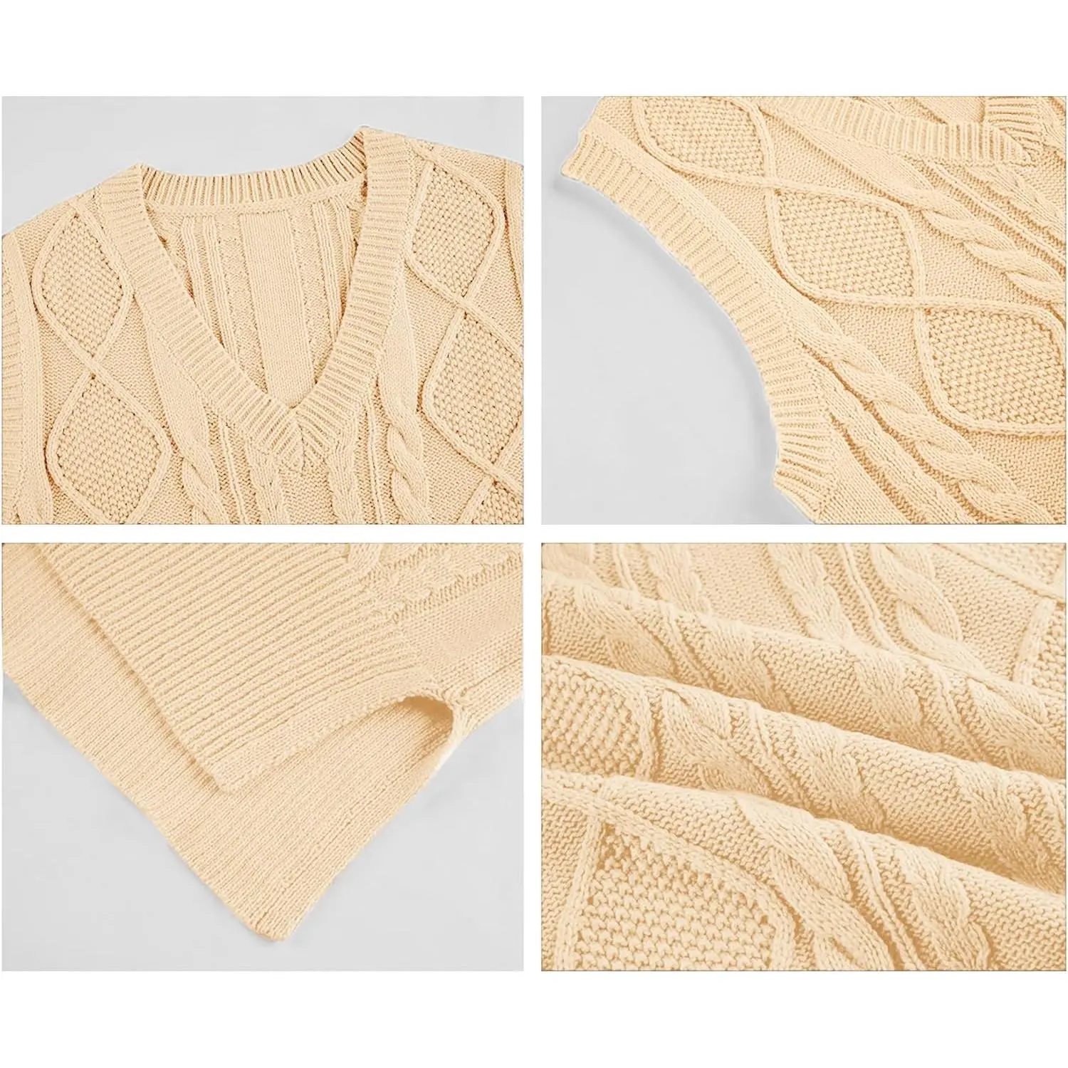 Women's Sweater Vest V Neck Knit Solid Color Sleeveless Cropped Tank Tops