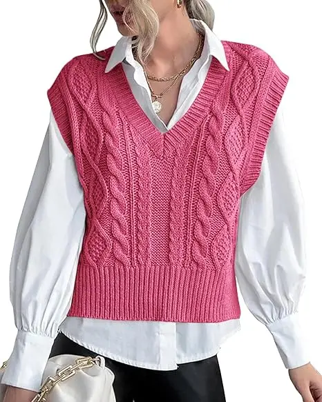 Women's Loose Comfy Sleeveless Pullover Knit Sweater Vest