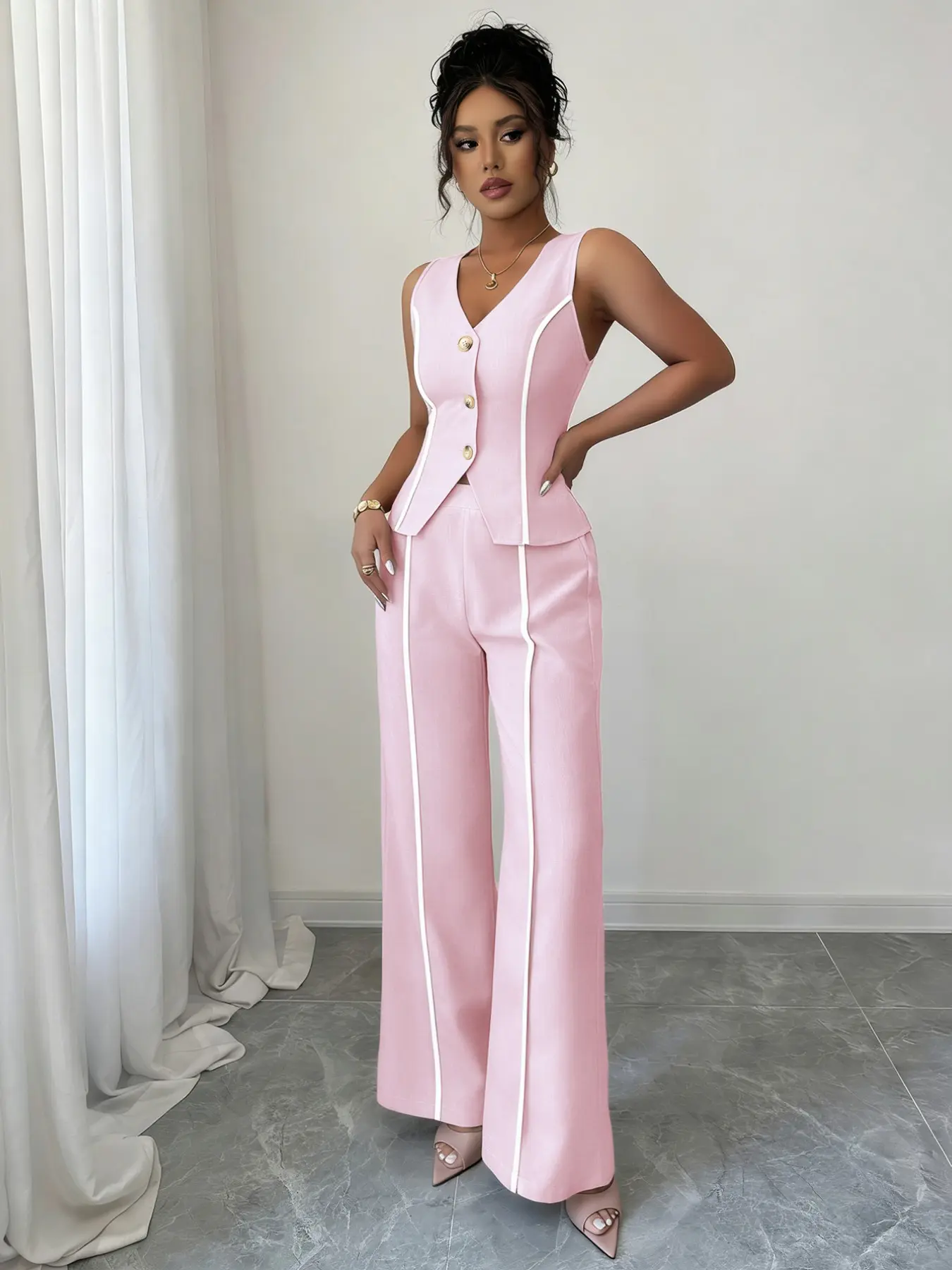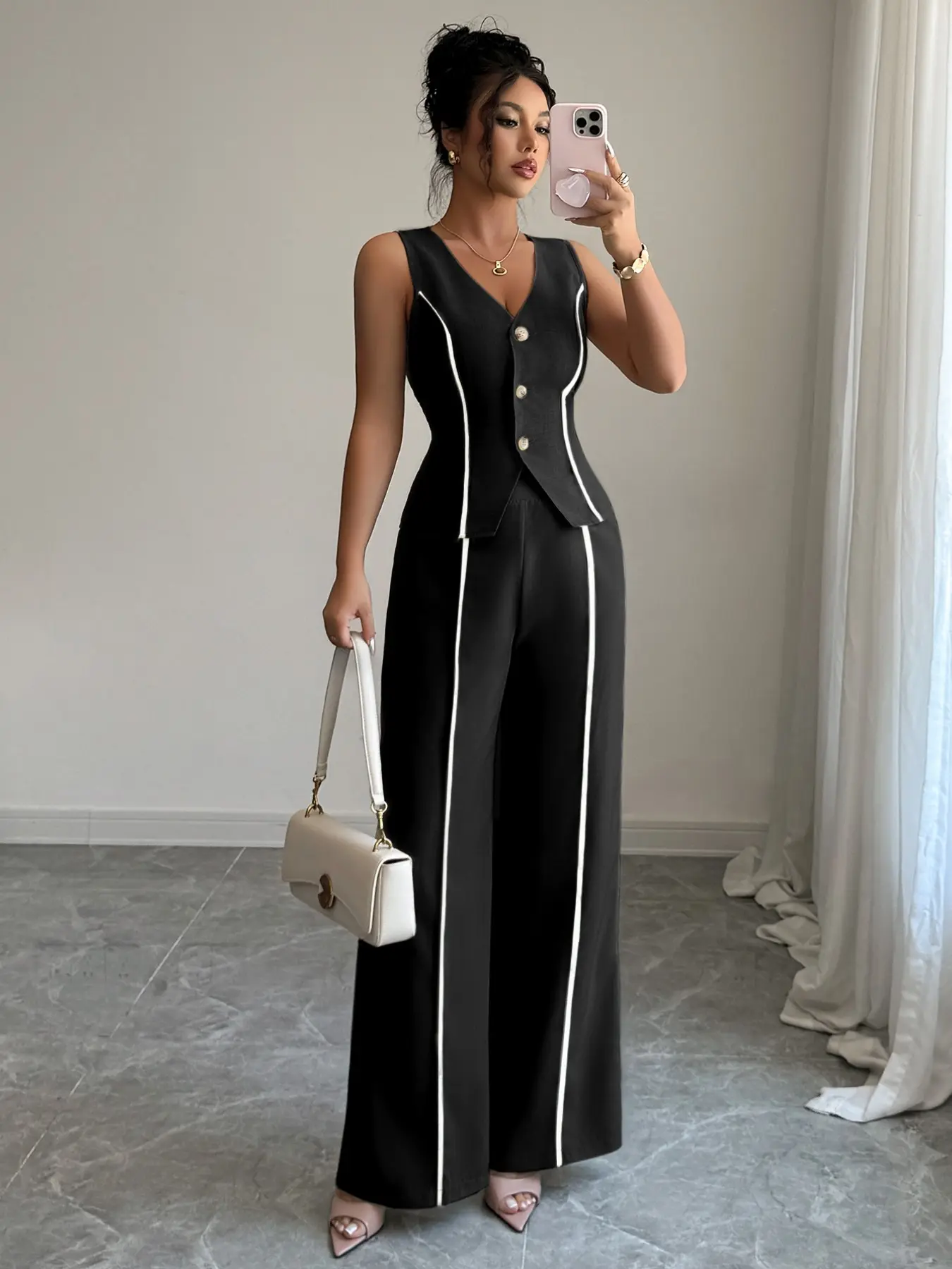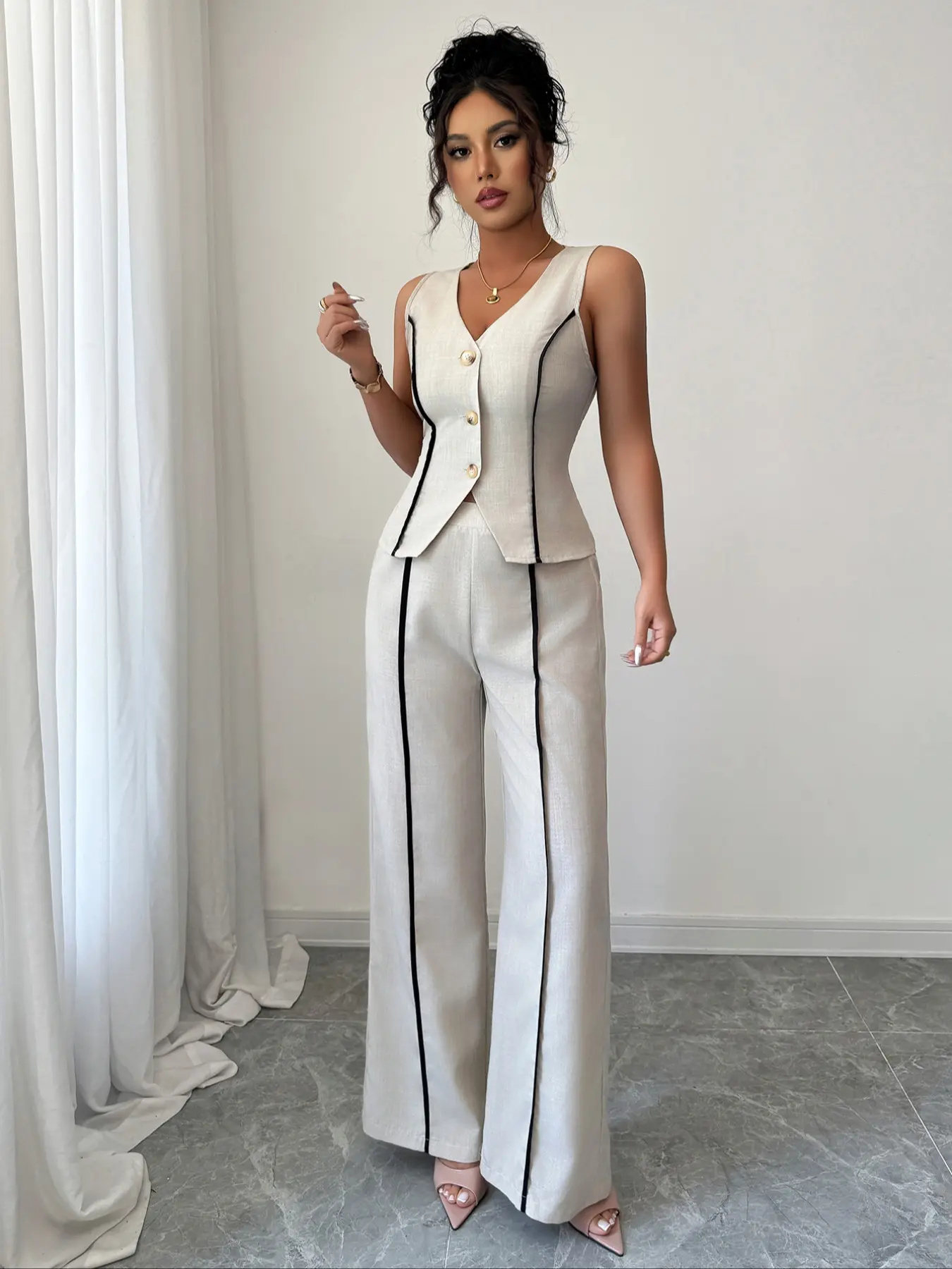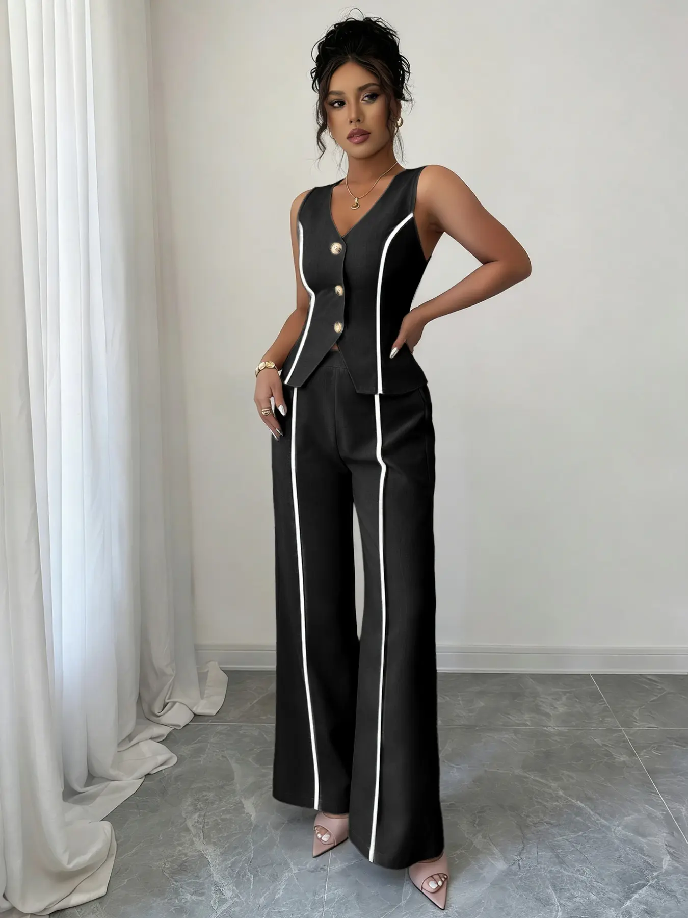 Colorblock V-Neck Sleeveless Vest Set with Wide Leg Pants, Spring & Fall Fashion, Slim Fit, Plain Pattern, Natural WaistColorblock V-Neck Sleeveless Vest Set with Wide Leg Pants, Spring & Fall Fashion, Slim Fit, Plain Pattern, Natural WaistColorblock V-Neck Sleeveless Vest Set with Wide Leg Pants, Spring & Fall Fashion, Slim Fit, Plain Pattern, Natural WaistColorblock V-Neck Sleeveless Vest Set with Wide Leg Pants, Spring & Fall Fashion, Slim Fit, Plain Pattern, Natural WaistColorblock V-Neck Sleeveless Vest Set with Wide Leg Pants, Spring & Fall Fashion, Slim Fit, Plain Pattern, Natural WaistColorblock V-Neck Sleeveless Vest Set with Wide Leg Pants, Spring & Fall Fashion, Slim Fit, Plain Pattern, Natural WaistColorblock V-Neck Sleeveless Vest Set with Wide Leg Pants, Spring & Fall Fashion, Slim Fit, Plain Pattern, Natural WaistColorblock V-Neck Sleeveless Vest Set with Wide Leg Pants, Spring & Fall Fashion, Slim Fit, Plain Pattern, Natural Waist