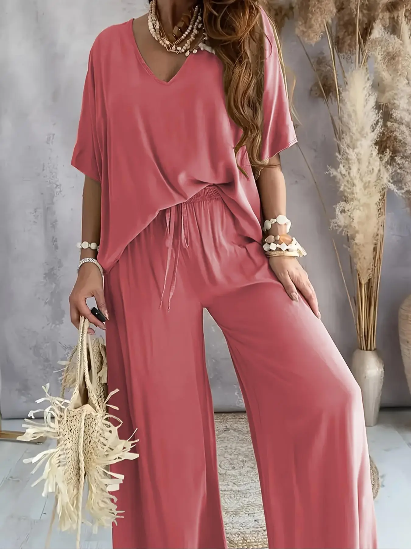 If you were looking for a comfy soft two-piece set, this Would be my top selection. It’s lightweight. I ordered a large if you want it oversized order your original size if you were looking for something more fitted because it has a stretch bed or a size down definitely recommend.