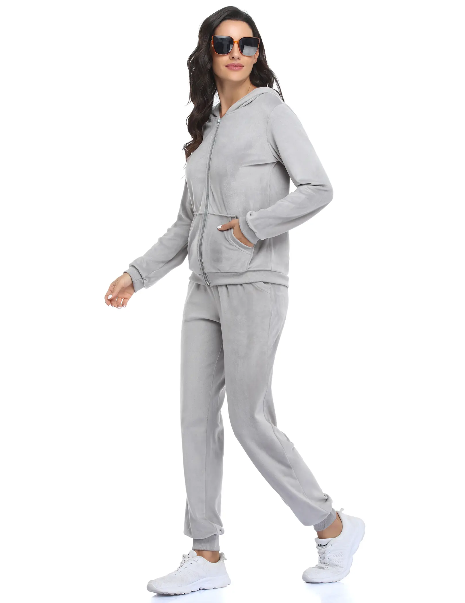 ·【Features】2 piece outfits for women designed in simply solid color, which will never go out of date. Solid color zipper hoodie top features 2 kangaroo pockets, make your hands warm and convenient to carry items, like phone, keys. High quality zipper works well, easy on and take off.The coordinating velvet sweatpants come with a full elastic waist with drawstring and side pockets for a comfortable adjustable fit and for much needed convenience.