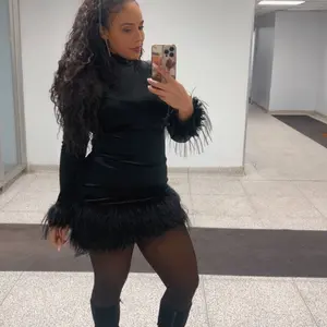 Women's Velvet Feather Patchwork Tight-Fitting Round Neck Long Sleeve Evening Dress #tiktokshop #ootd #fyp #dress #tiktokshopholidayhaul