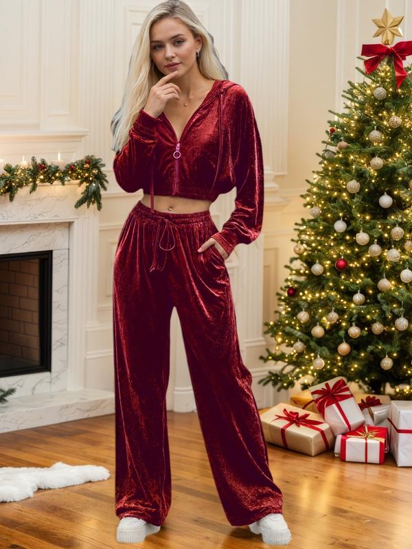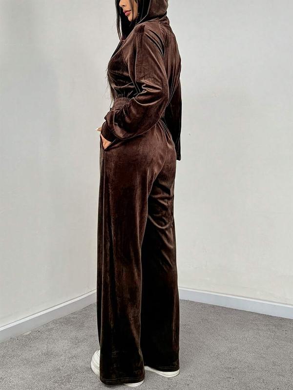 Women's Velvet Long Pants Set, Zip-Up Hoodie & Loose Fit Pants, Ideal for Sports, Casual, Home Wear, Fall & Winter Fashion #sweaterset #workoutwear #puffervestoutfits #womenssweatpants #loungewearsets #widelegsweats #sweatsets #mensjoggersets #joggersets #womenssweats