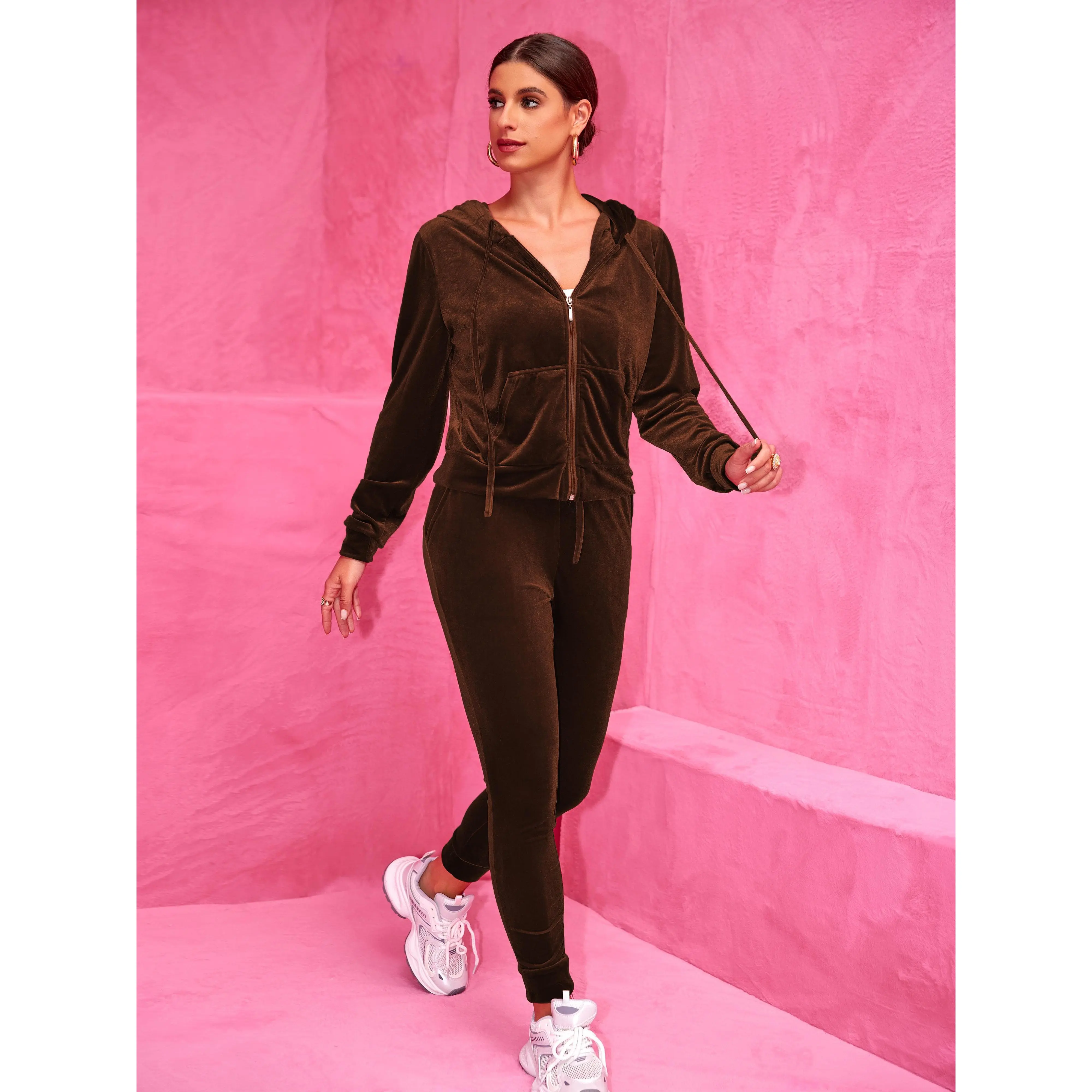 5. Joyfunear Women's Velvet Tracksuit Set: Hooded Zip-Up Jacket + Jogger Pants
