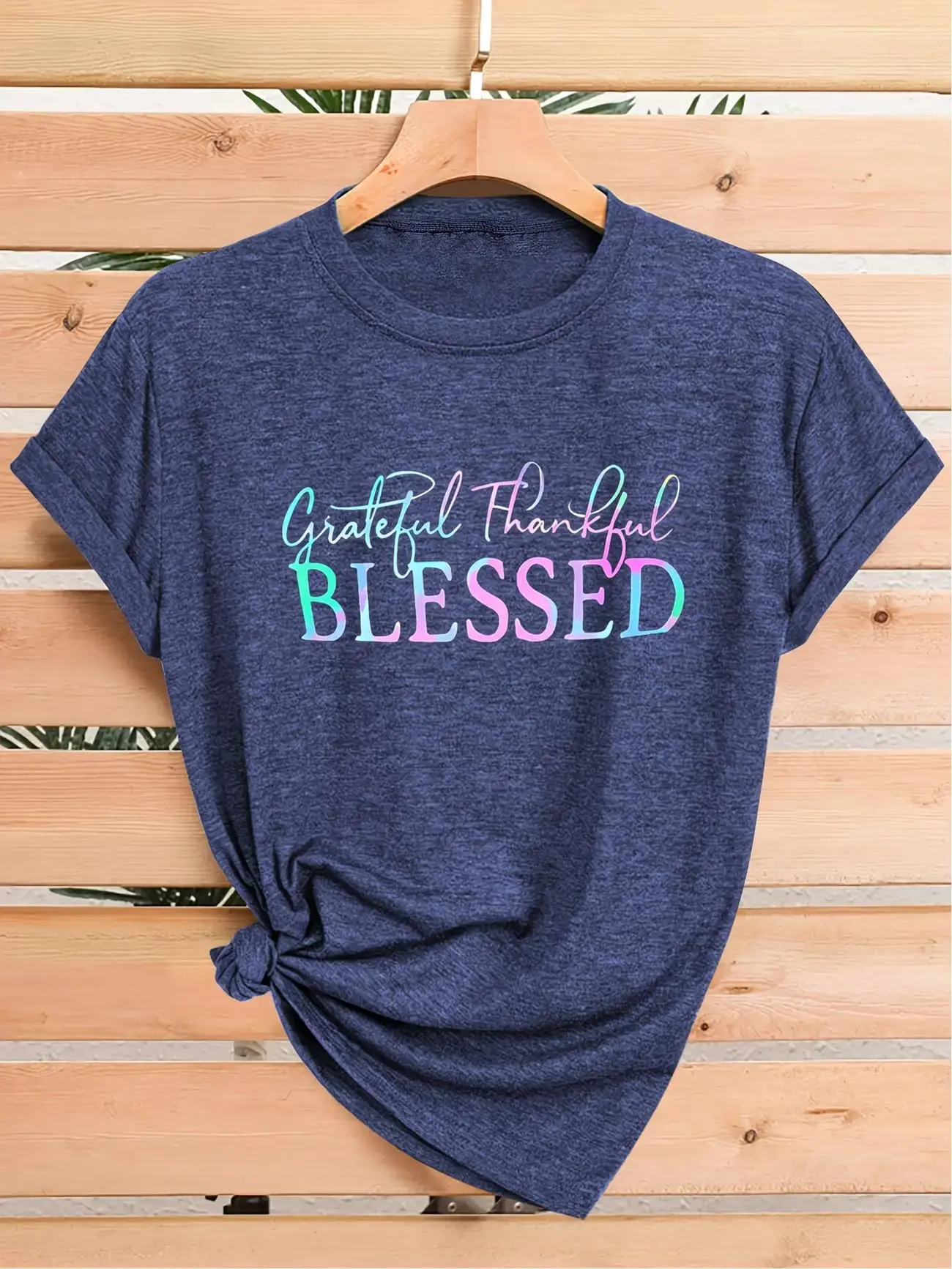 5. Women's Vintage - Alphabet Letter Print T-Shirt - Casual Short Sleeve Round Neck Blouse Top with - Chromatic Colors - Spring Summer Fall Wardrobe