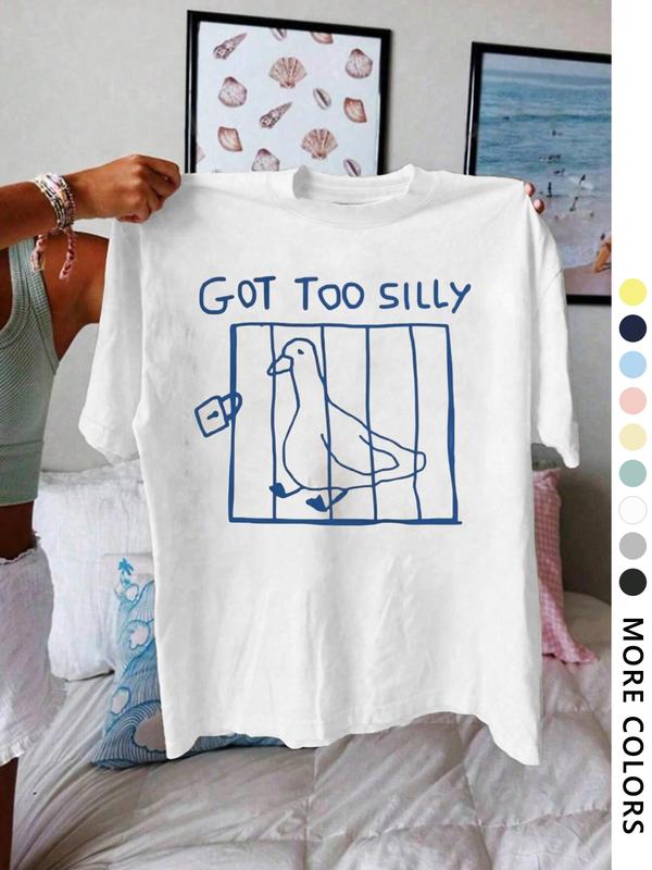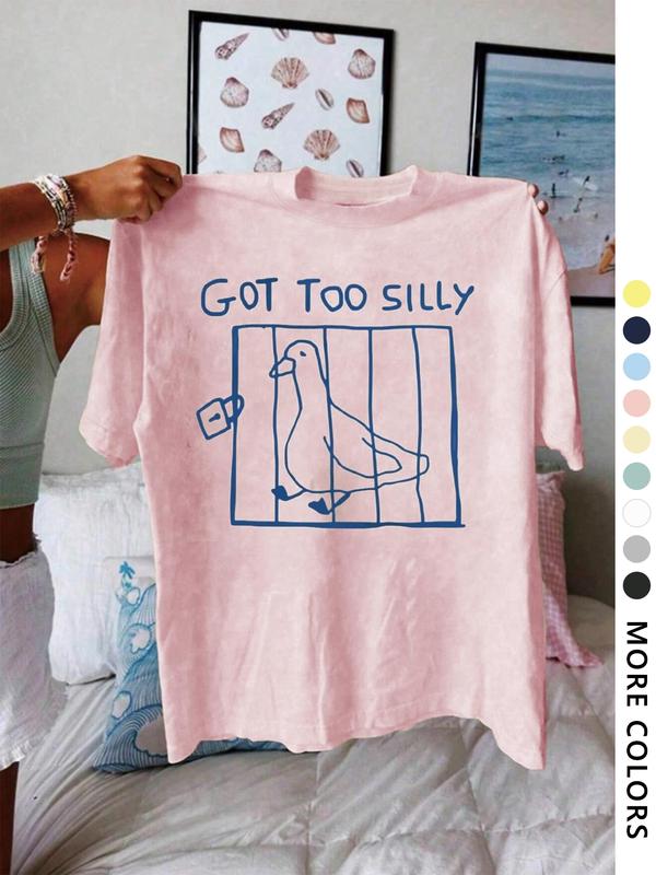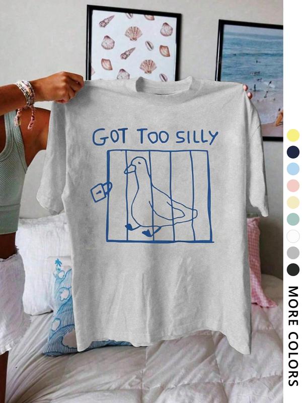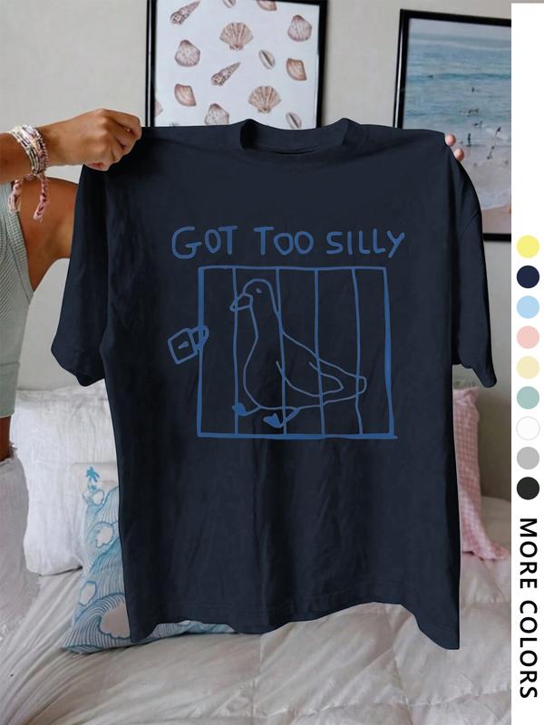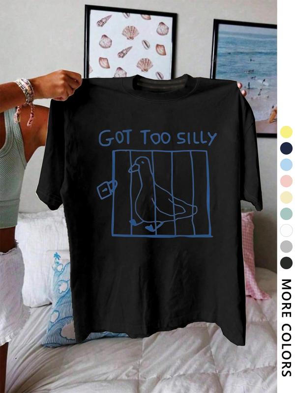 5. Women's Letter & Bird Print Round Neck Tee, Vintage Trendy Casual Short Sleeve T-shirt for Daily Wear, Ladies All Seasons Clothes