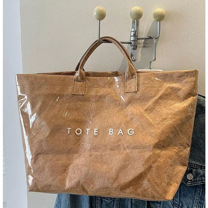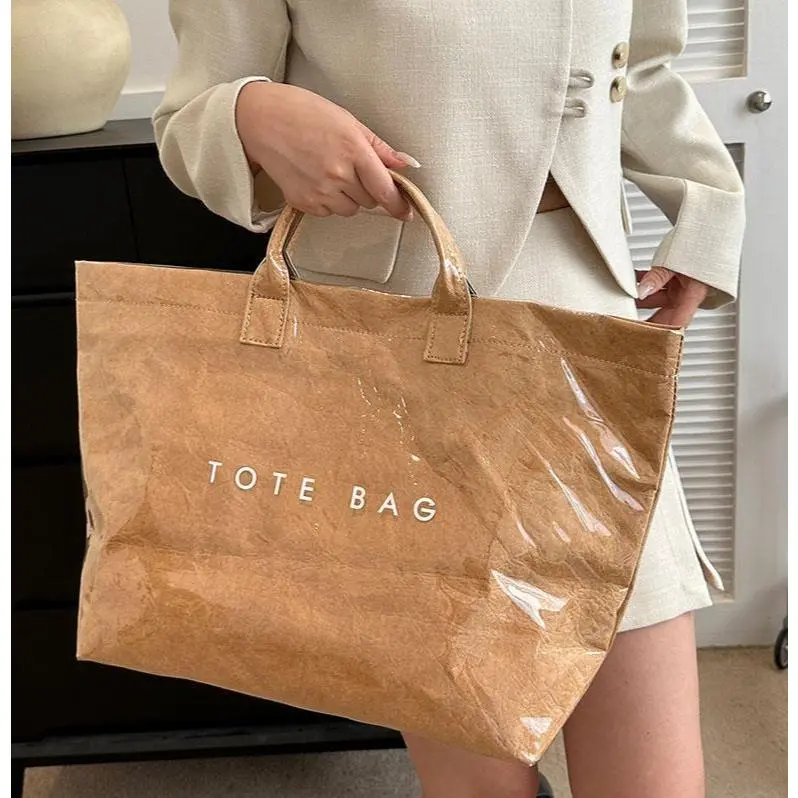 🧺 Vintage Women’s Kraft Paper Tote Bag – Waterproof, Spacious & Fall-Winter Essential