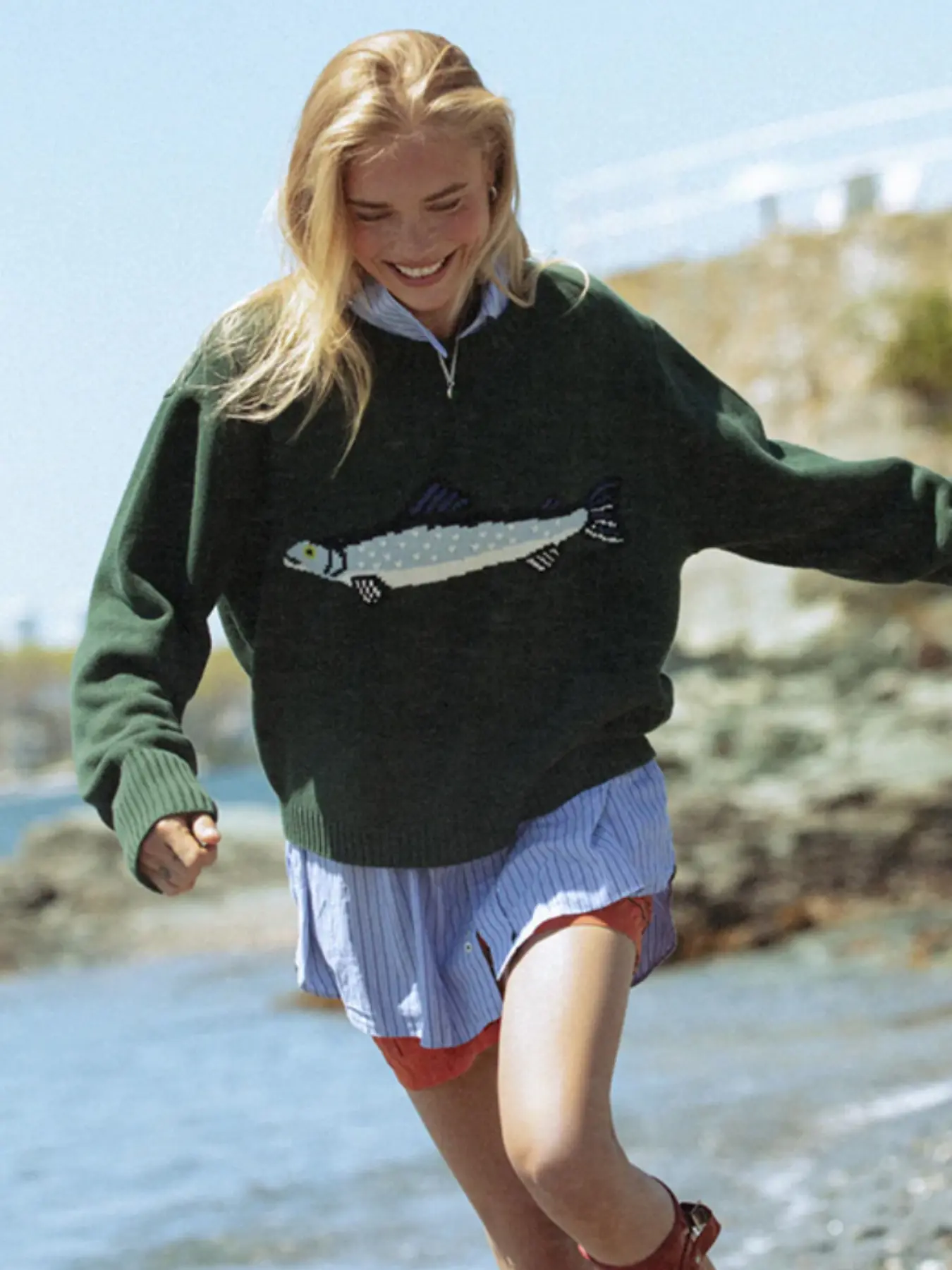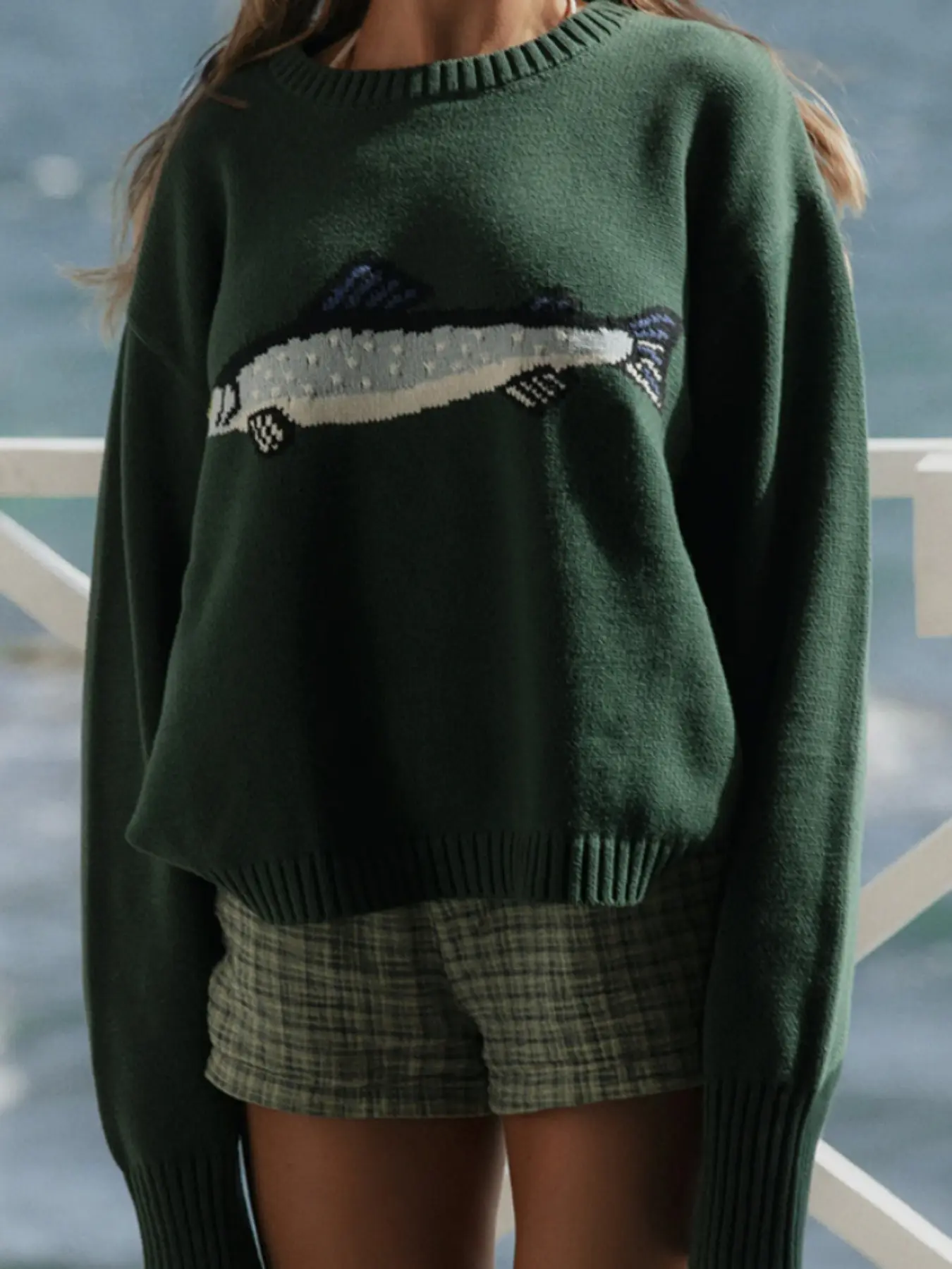 Absolutely sweet sweater. Fish design reflecting perfect brown/ beige/black - perfect f fall. Love it. Generous fit