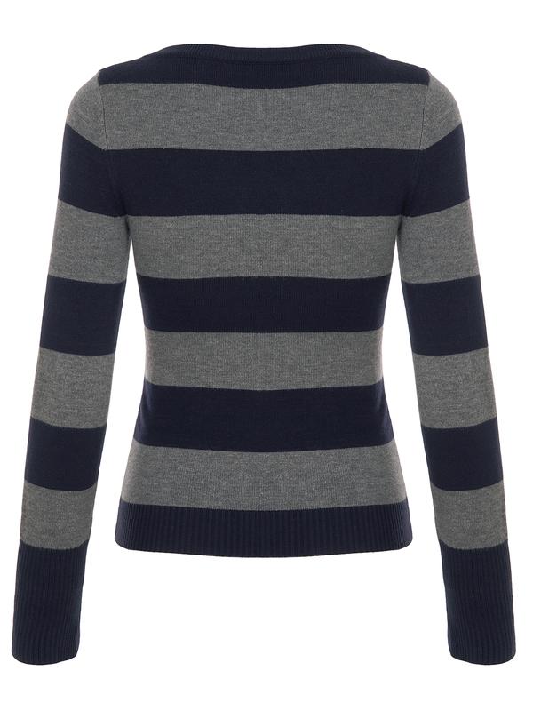 This navy & grey striped knit top is an autumn/winter must-have. Its versatile pattern and body-hugging fit bring a touch of sophistication to any outfit—snag it on Black Friday!#Sweater #AutumnWinterOutfit #FashionFind #BlackFriday #VersatileStripedKnit