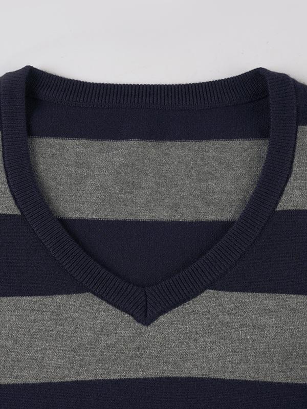 This striped V-neck knit sweater is a chic autumn/winter staple. Its color-block design adds a trendy touch to any look—grab it on Black Friday!#Sweater #AutumnWinterOutfit #FashionFind #BlackFriday #StripedKnit