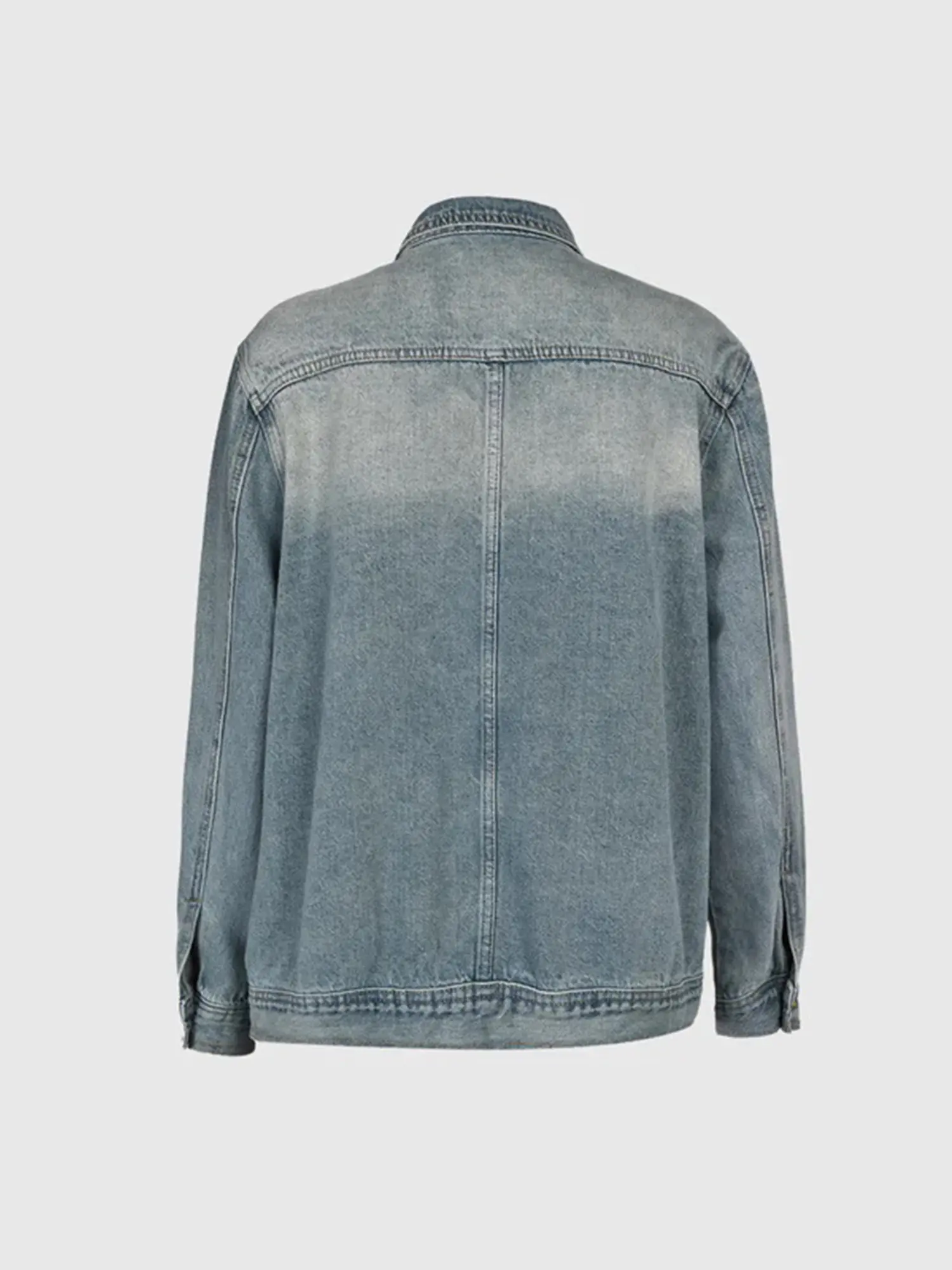 ·This denim jacket features a vintage washed finish, adding a trendy touch to your outfit. 🌿