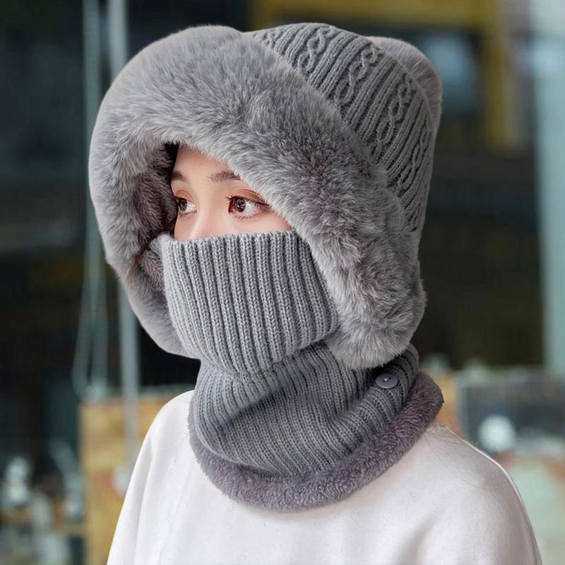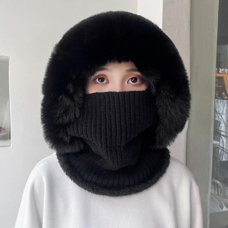 5. 2025 Knitted Hat Multipurpose Pompom Plush Ears Protection Solid Color Autumn Winter Women Face Cover Neck Gaiter Warmer Beanie Cap for Ski