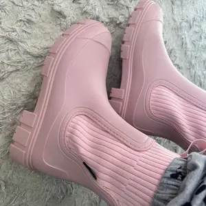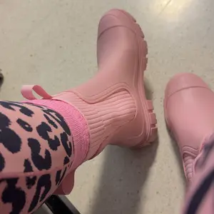 These are adorable and look just like the picture. The rubber isn’t stiff and they’re quite comfortable for rubber boots! The pink color is beautiful.