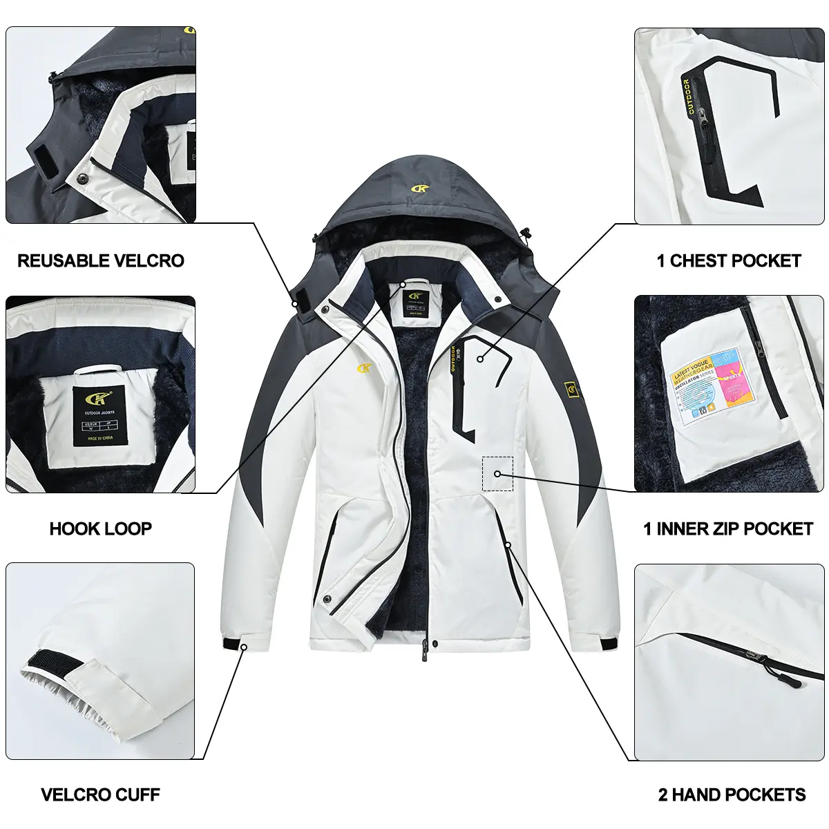 ·[Design] Stand Collar,Detachable Zipper Hood with Cord Lock,Hook&Loop Fastener Sleeve Cuffs