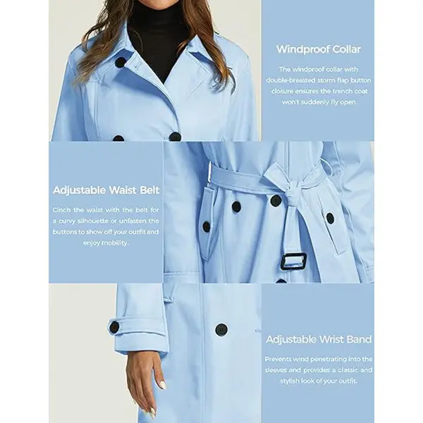 ·Protection You Deserve - Made with waterproof fabric, our waterproof trench coat is designed to keep you dry even when it rains. Each women's windproof trench coat also has a double-breasted closure to shield you from strong winds.