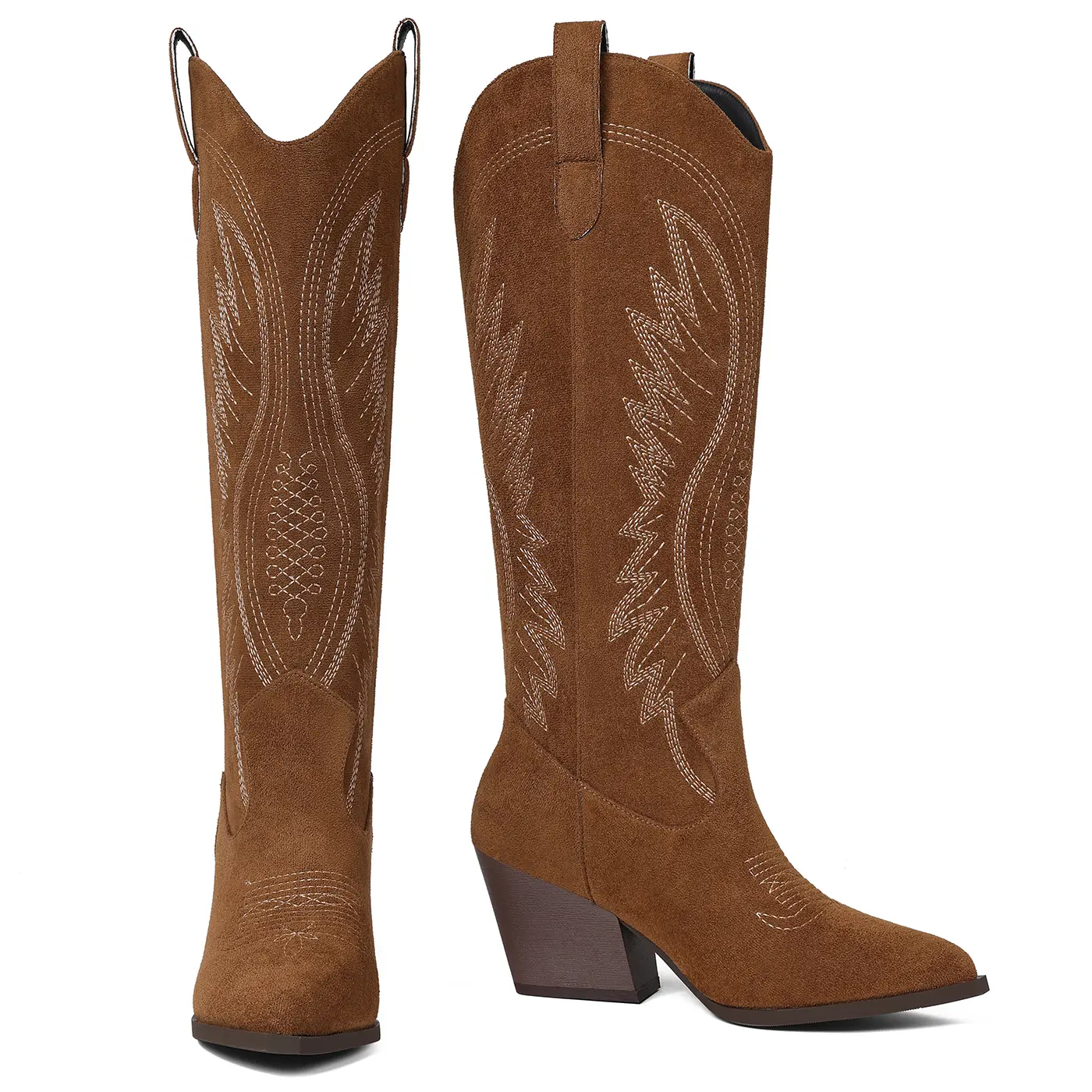 【Western Knee High Style】: Pull on design, almond toe, and chunky heel, these boots exude a rich Western vibe. Whether paired with jeans or skirts, they showcase both fashion and personality