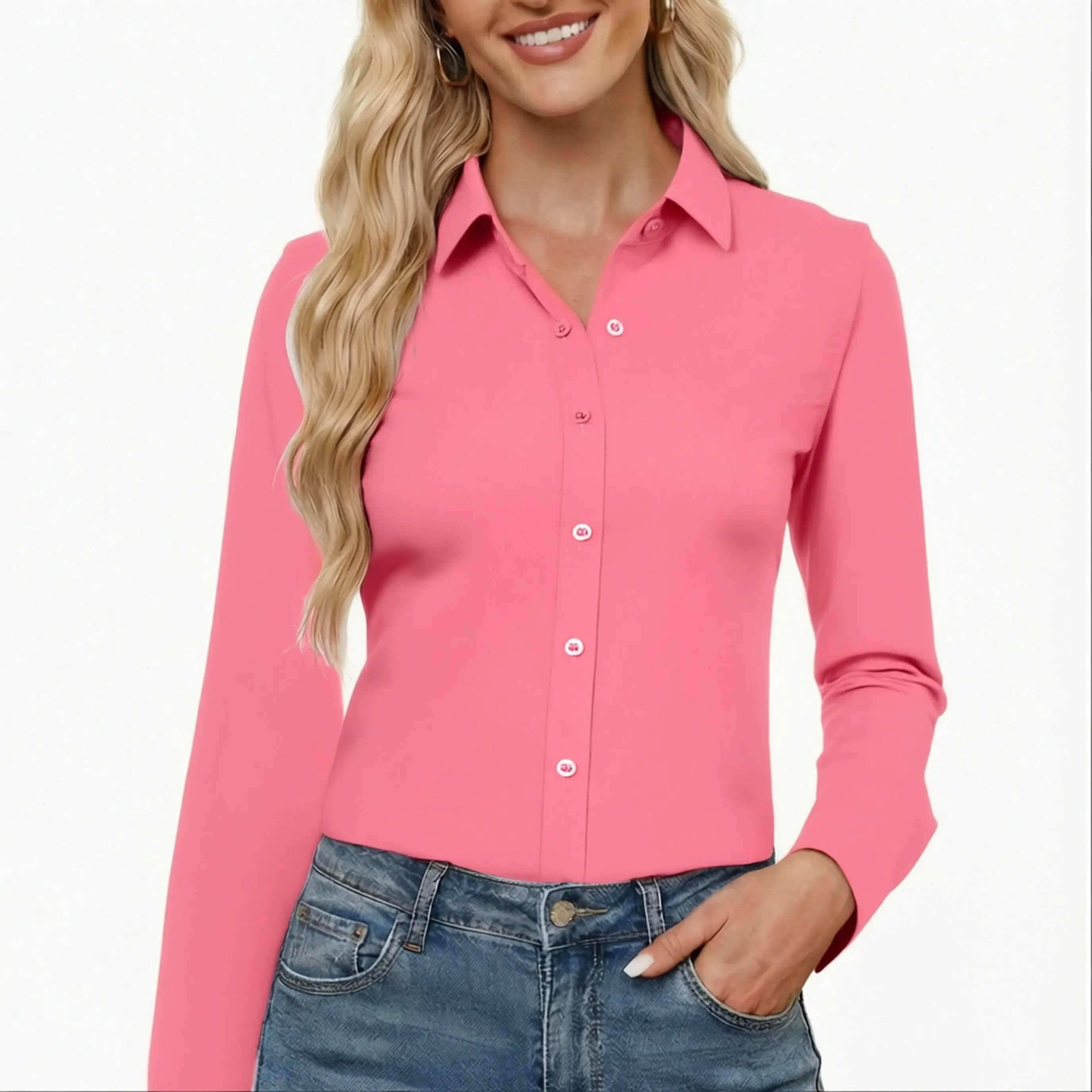 ¡Easy Care & Wrinkle Resistant â Spend less time ironing and more time enjoying your day with this button down shirts for women. It washes easily, dries quickly and resists wrinkles to keep you looking polished with minimal effort
