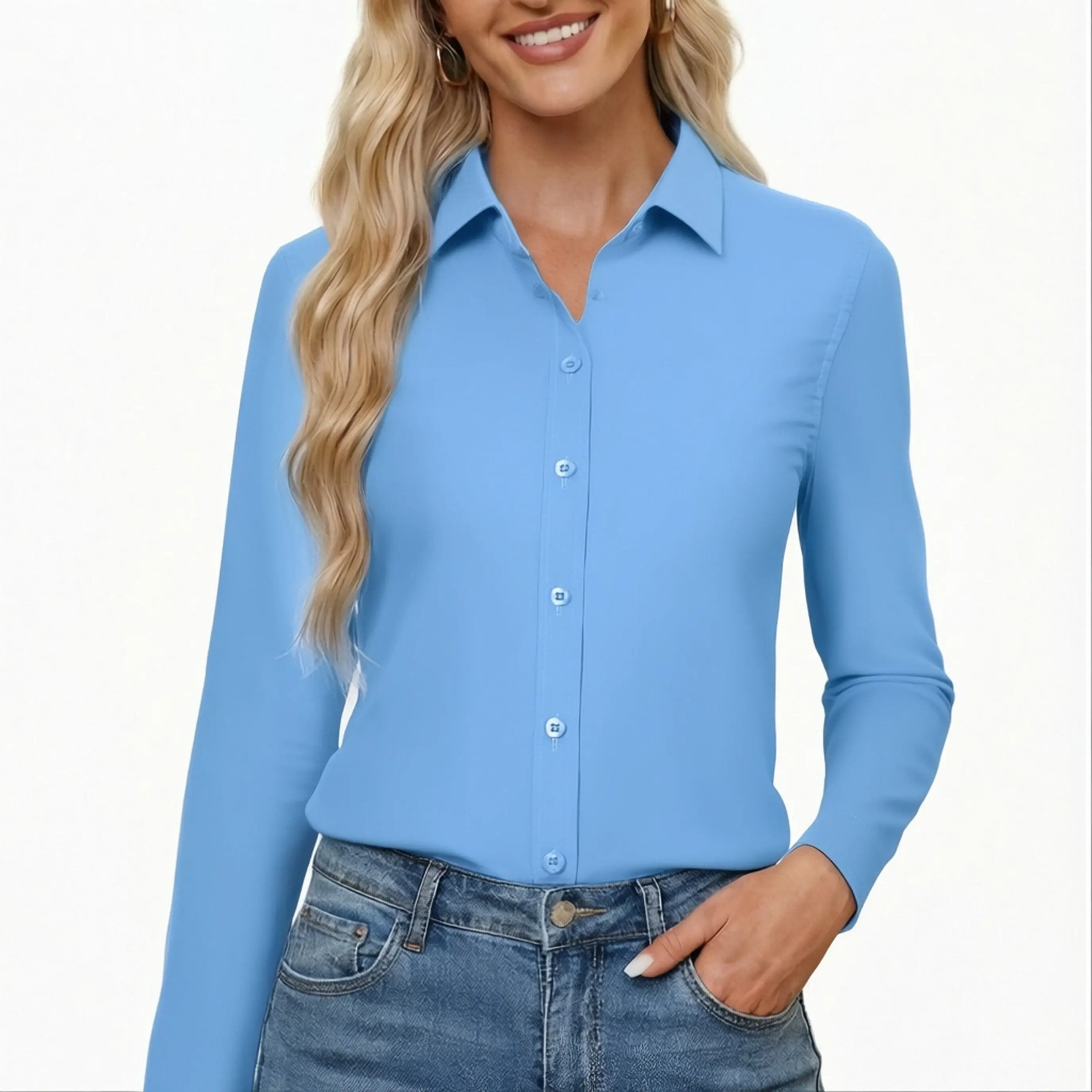 ¡Flattering Fit for Every Body â This women button down shirt comes in multiple US sizes with slim and classic fits. Designed to fit and flatter every body comfortably, it keeps you confident and at ease all day long