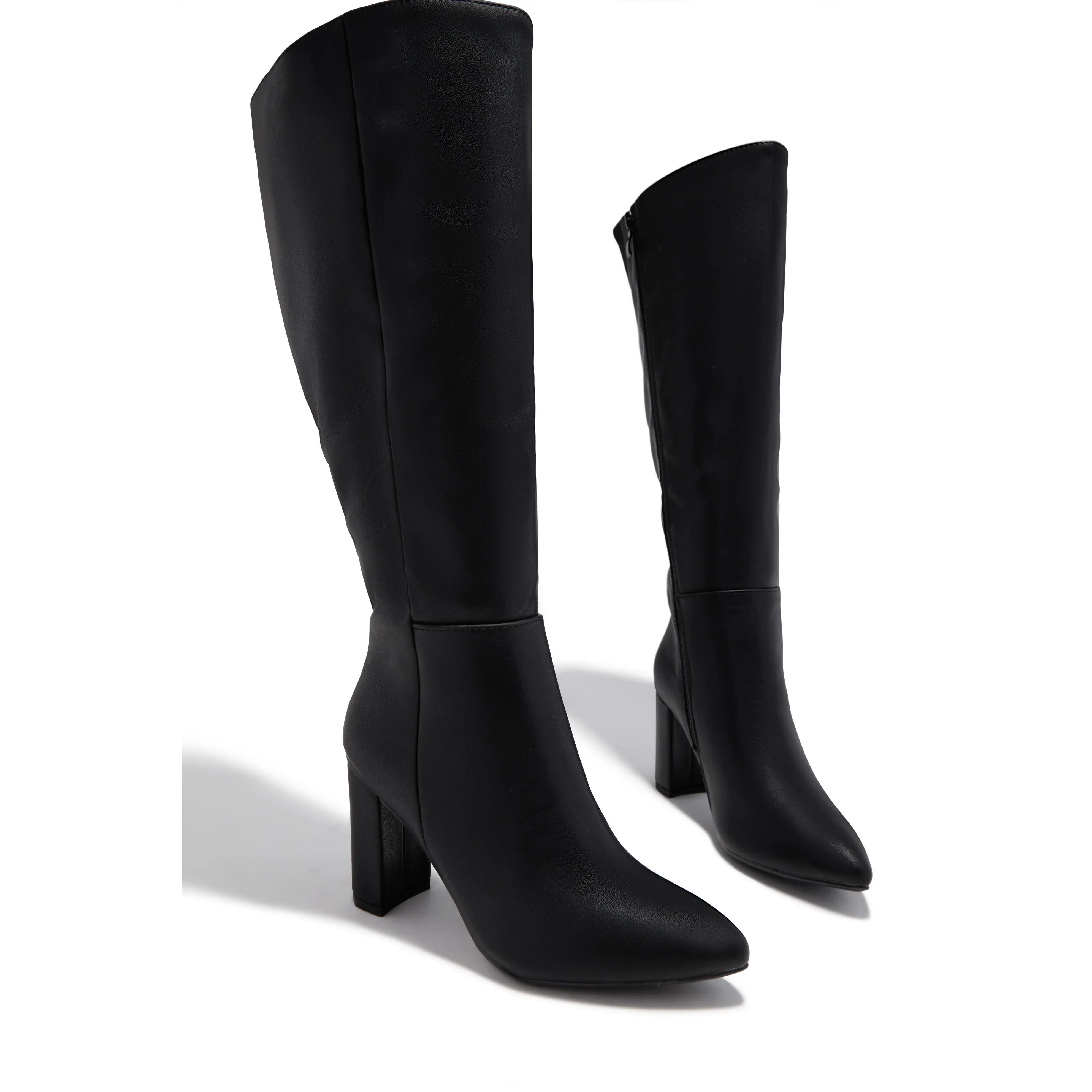 Fine Time Wide Fit Block Heel Knee High Boots - Black #BlockHeelBoots #KneeHighBoots #WideFitShoes #WomensStyle #FYP